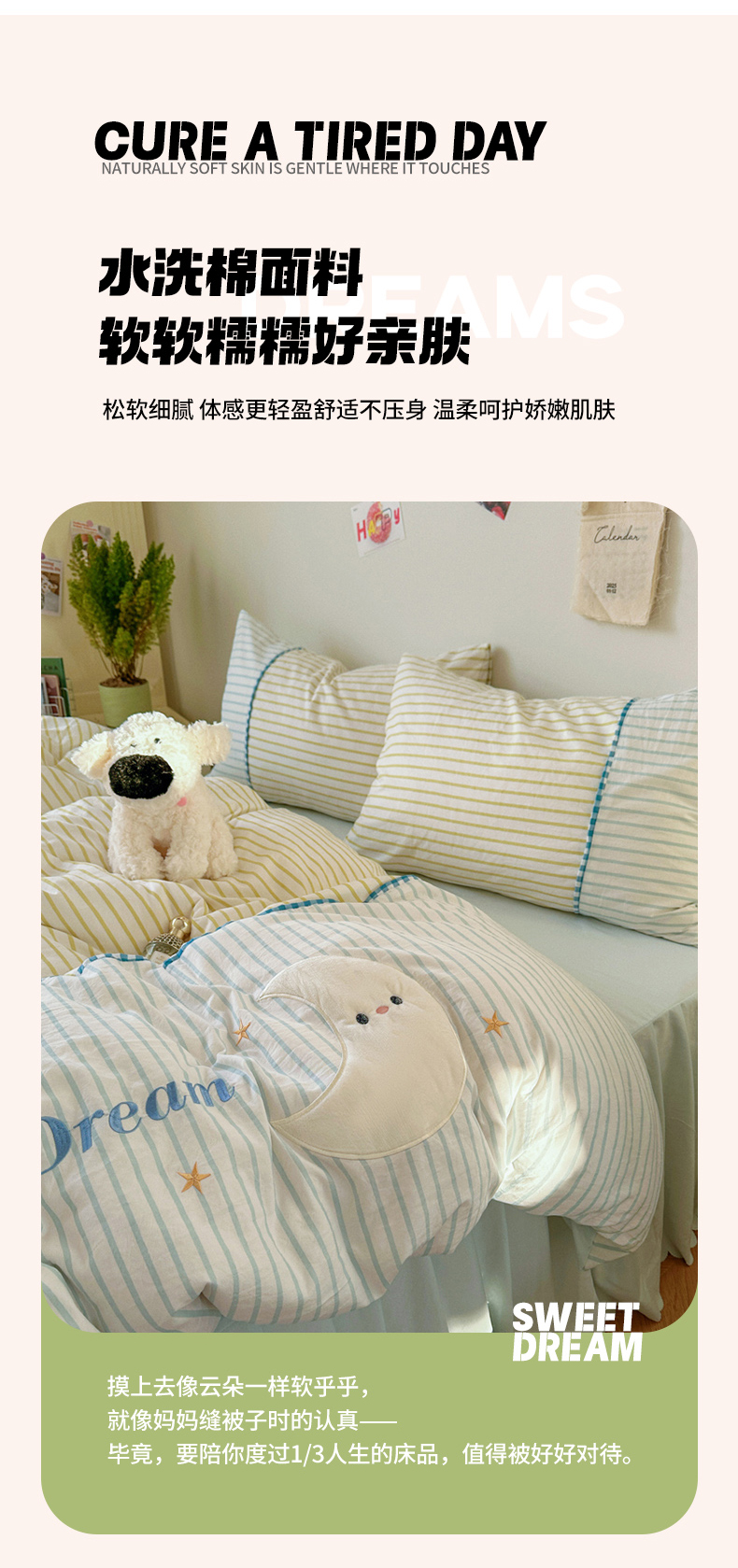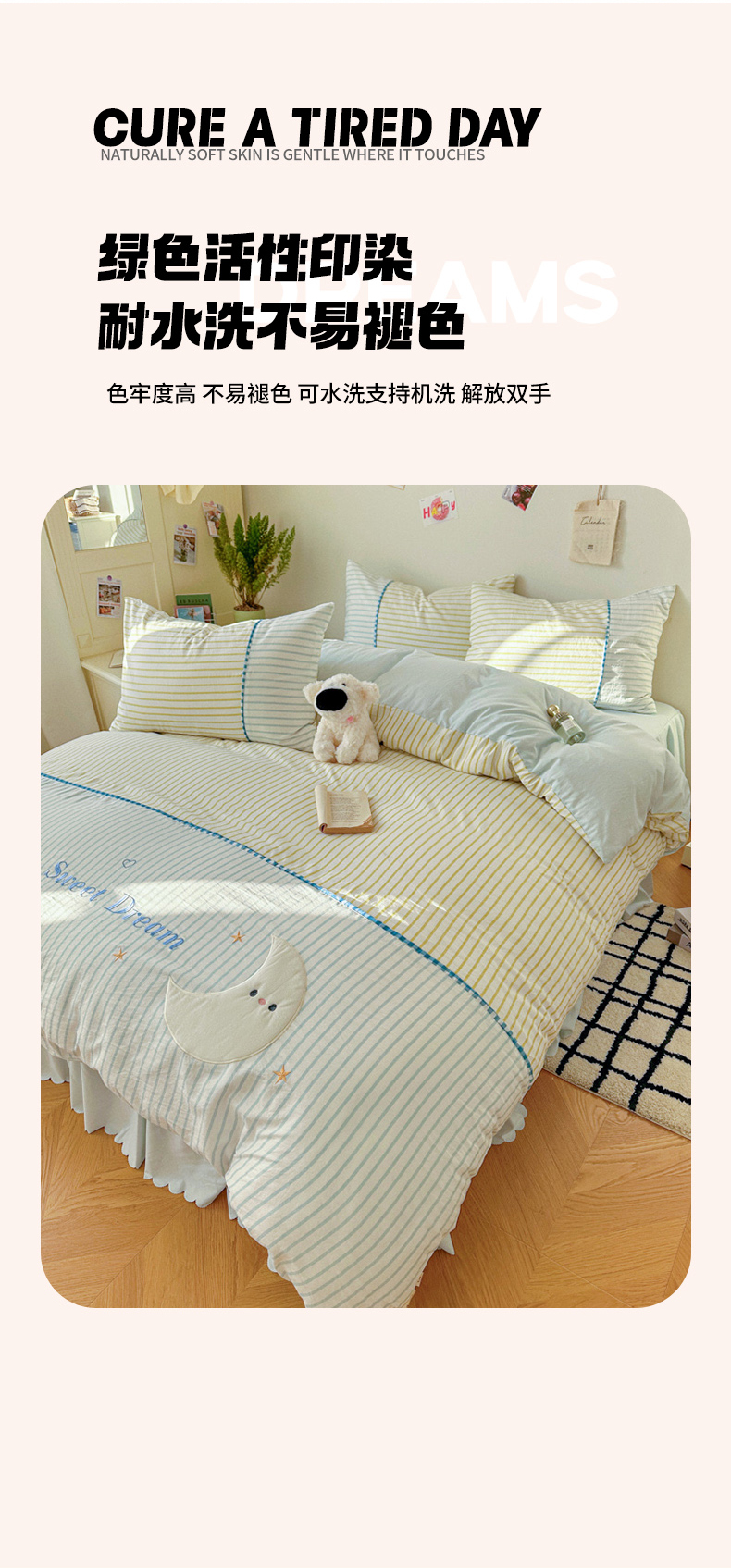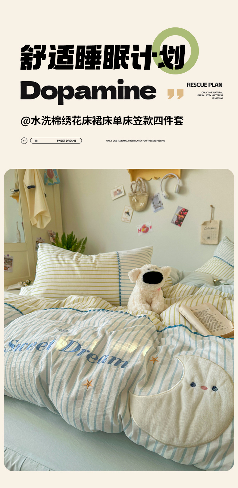 当前位置: 91家纺网 > 商品网购 > 床品套件 > 四件套 > 水洗棉四件套 > 贝凯瑞 2026款仿棉木棉水洗棉绣花ins小清新床裙床单款四件套-星月语 星月语-奶油晴川