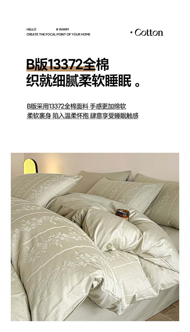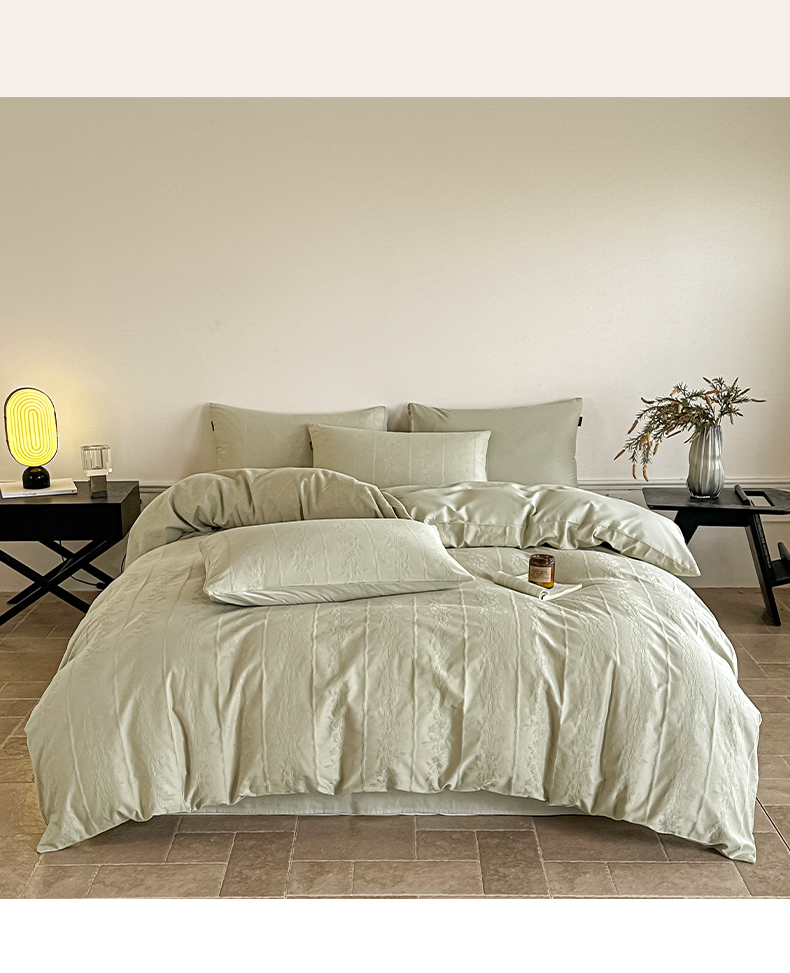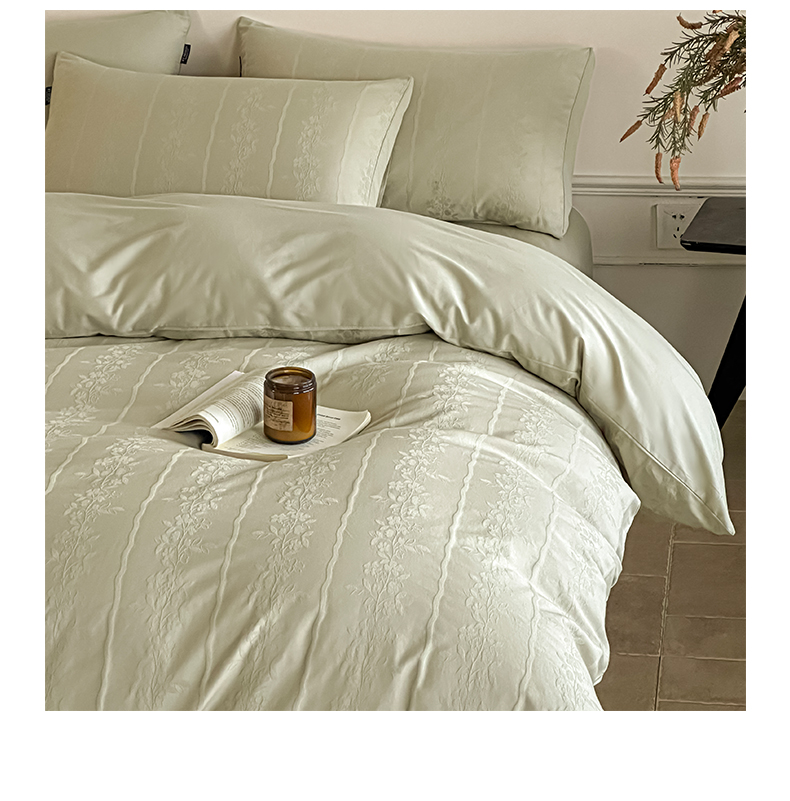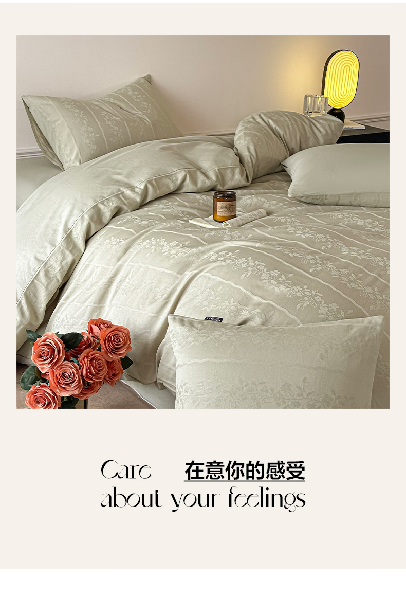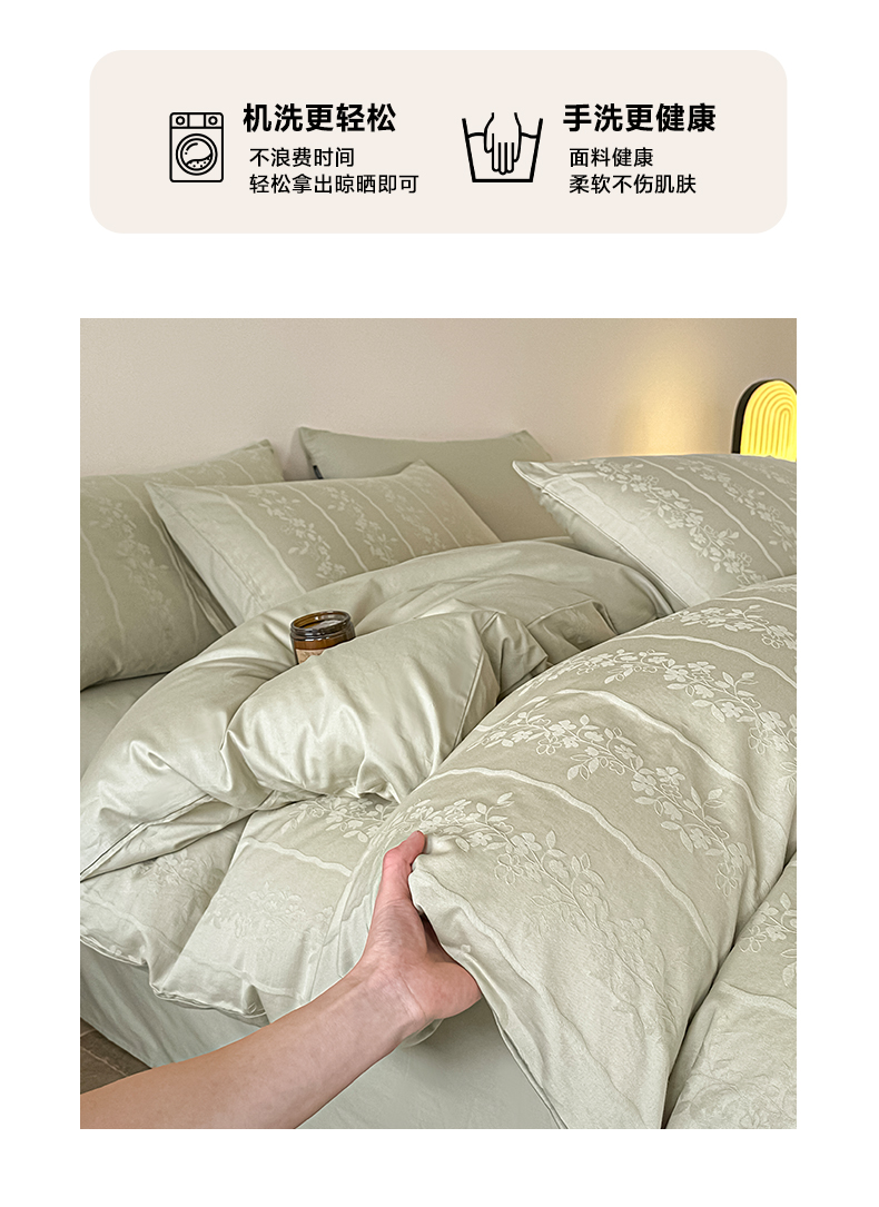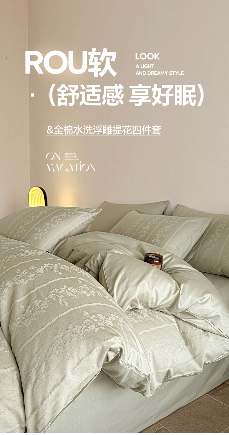 商品名称:如一 2026新款60S全棉水洗提花立体厚织浮雕四件套 花蔓-橄榄绿