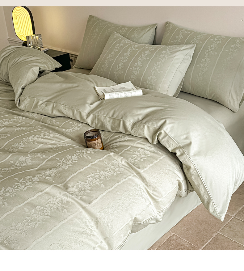 如一 2026新款60S全棉水洗提花立体厚织浮雕四件套 花蔓-橄榄绿