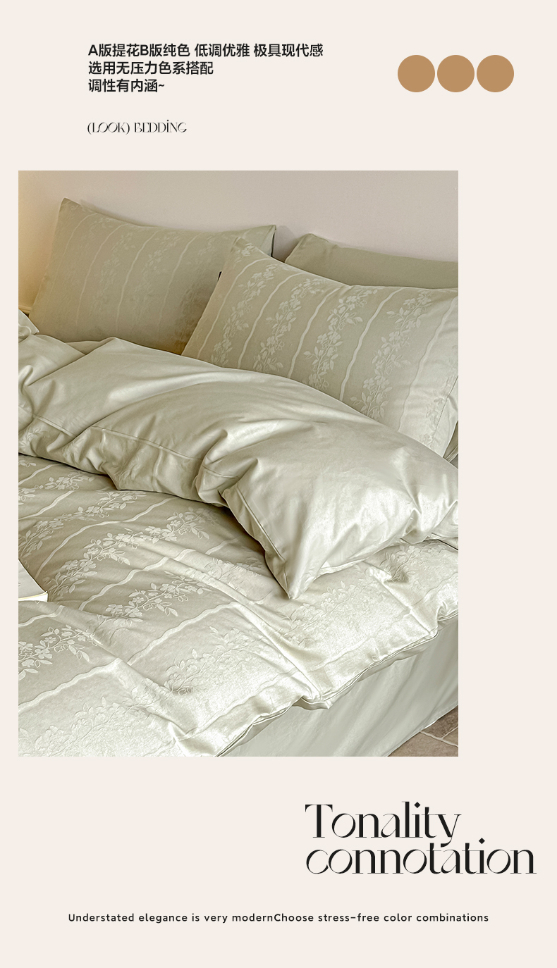 (总)如一 2026新款60S全棉水洗提花立体厚织浮雕四件套,肌理-金属灰,肌理-暖杏米,肌理-雅致银,暗香-唯美粉,蝶梦-湖水绿,蝶梦-唯美粉,花蔓-橄榄绿,花蔓-唯美粉,流年-金属灰,迷蝶-奶米杏,迷蝶-唯美粉,香草-淡雅紫,香草-橄榄绿,香草-奶昔白,腰果-金属灰,腰果-奶米杏,叶韵-云水蓝