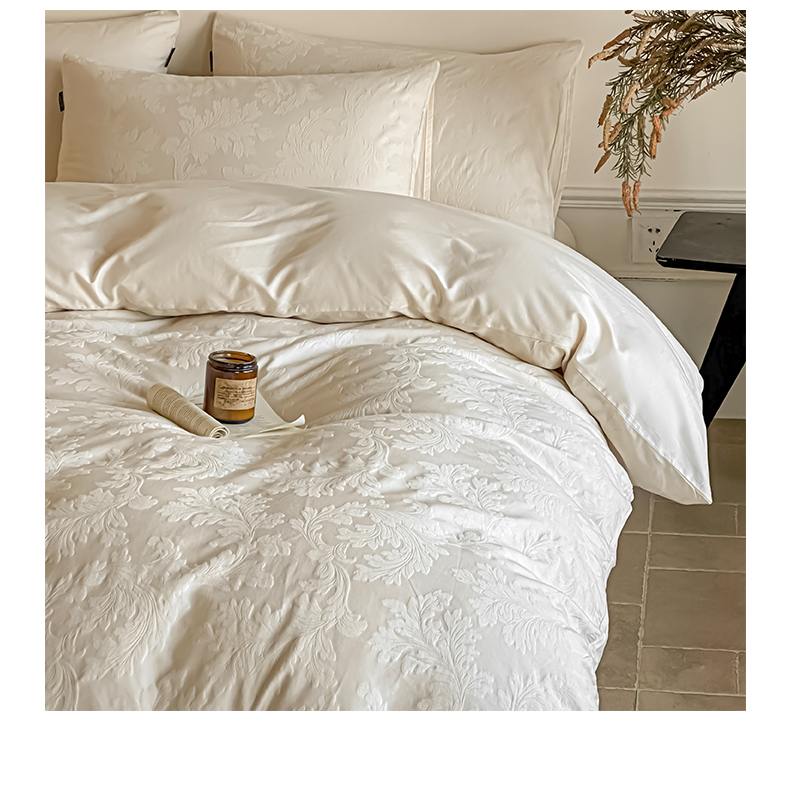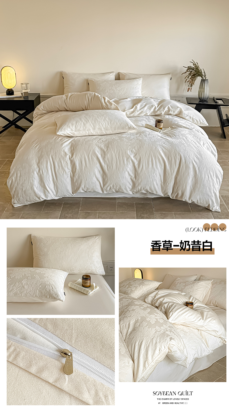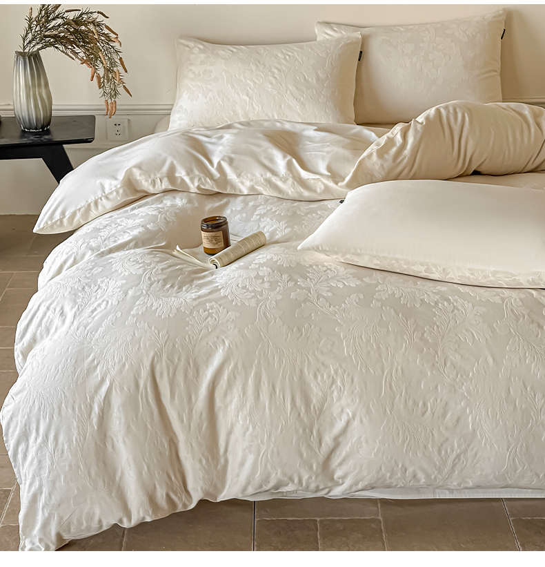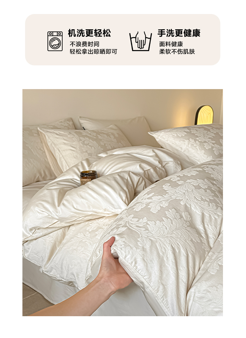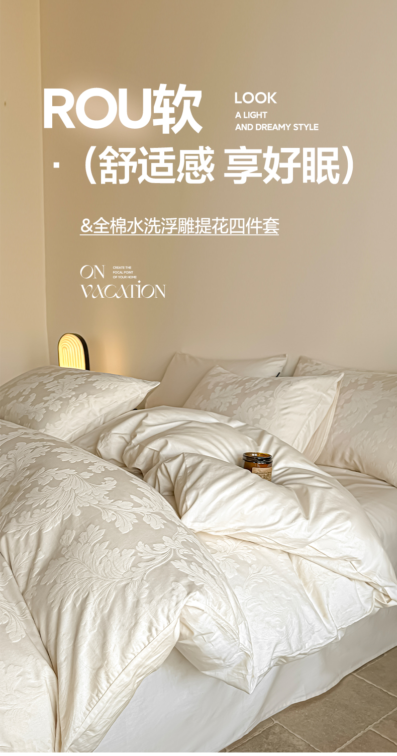 商品名称:如一 2026新款60S全棉水洗提花立体厚织浮雕四件套 香草-奶昔白