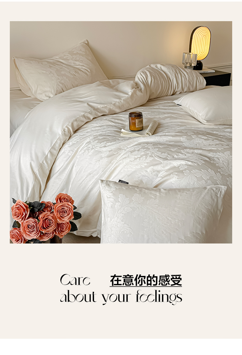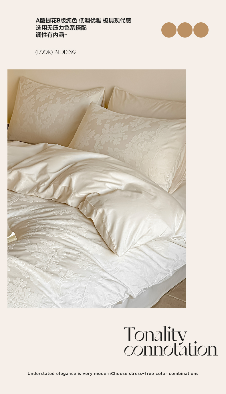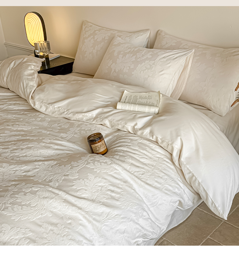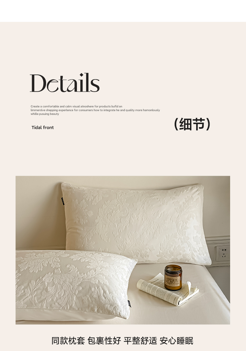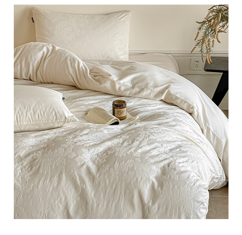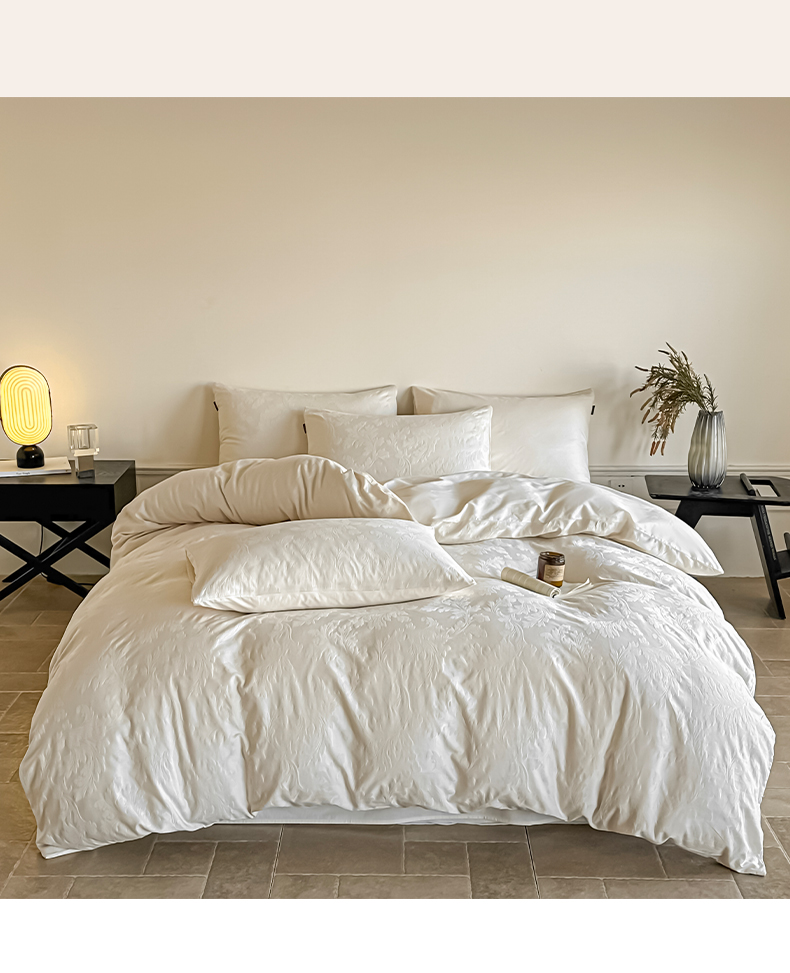 商品名称:如一 2026新款60S全棉水洗提花立体厚织浮雕四件套 香草-奶昔白