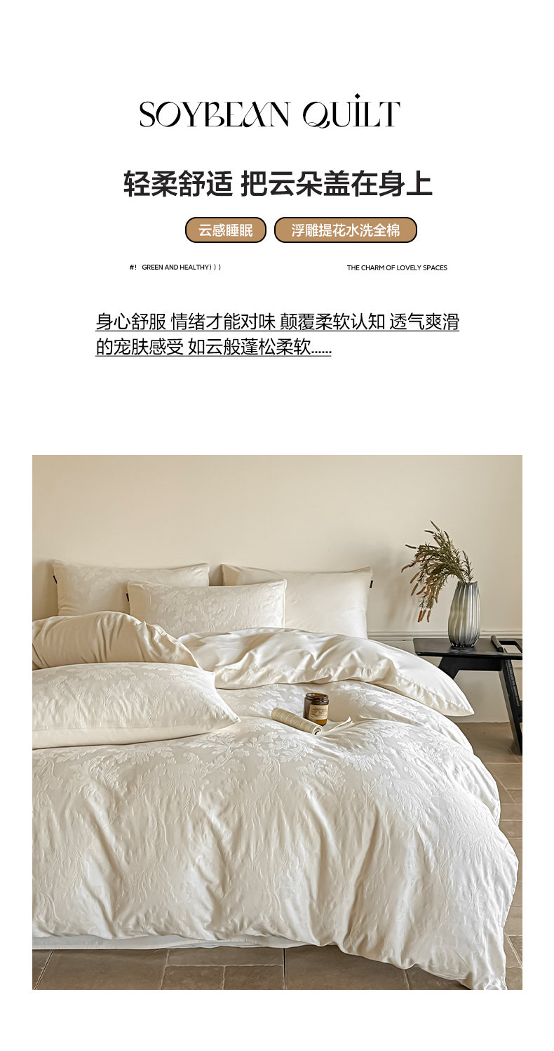 如一 2026新款60S全棉水洗提花立体厚织浮雕四件套 香草-奶昔白