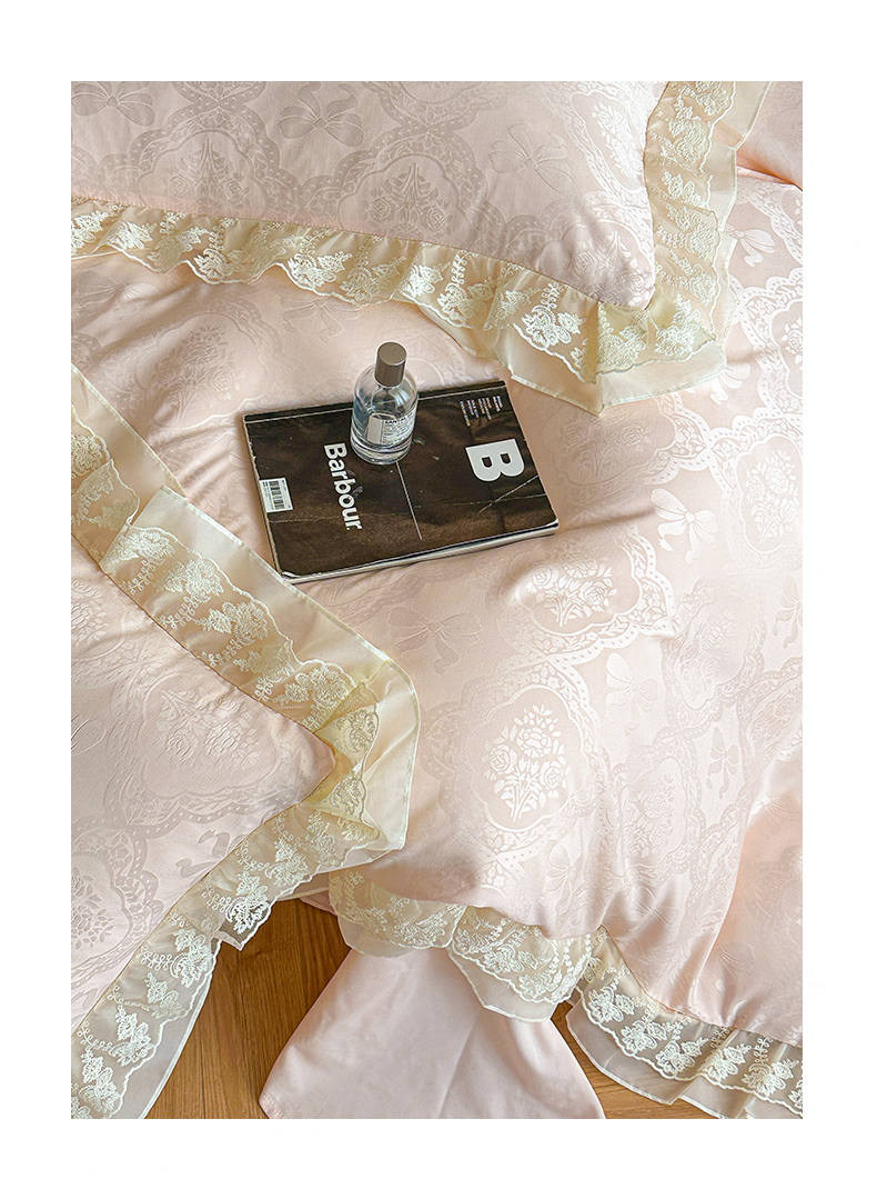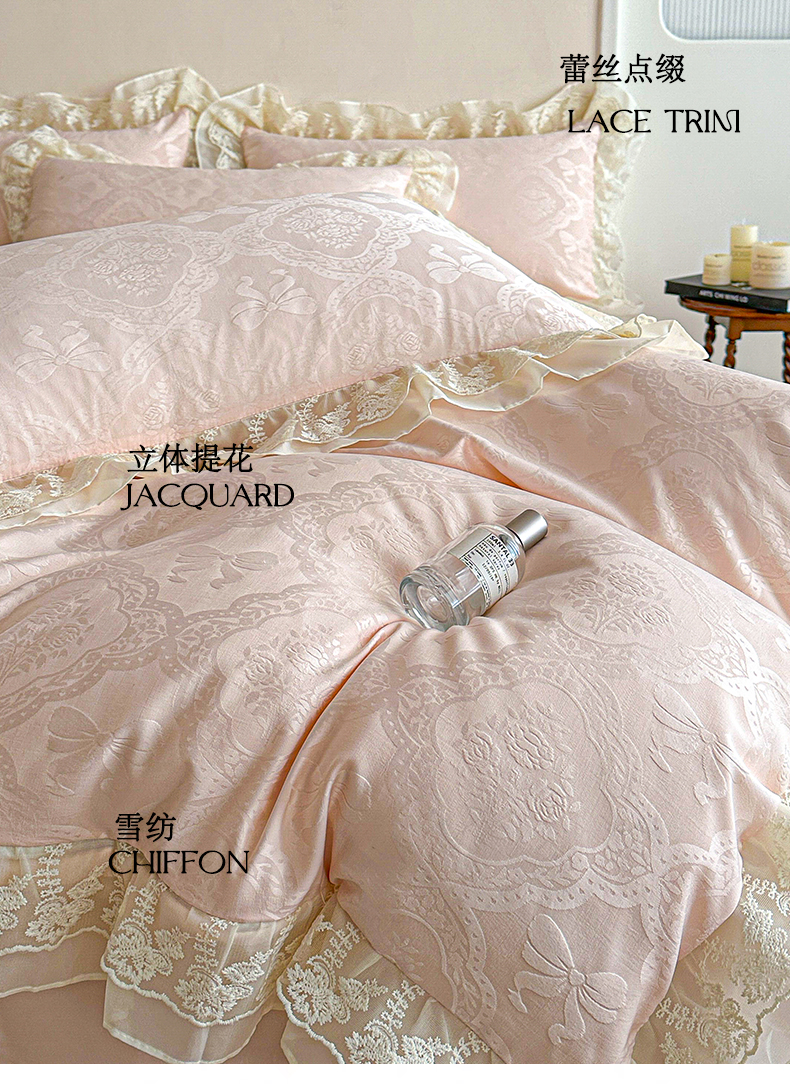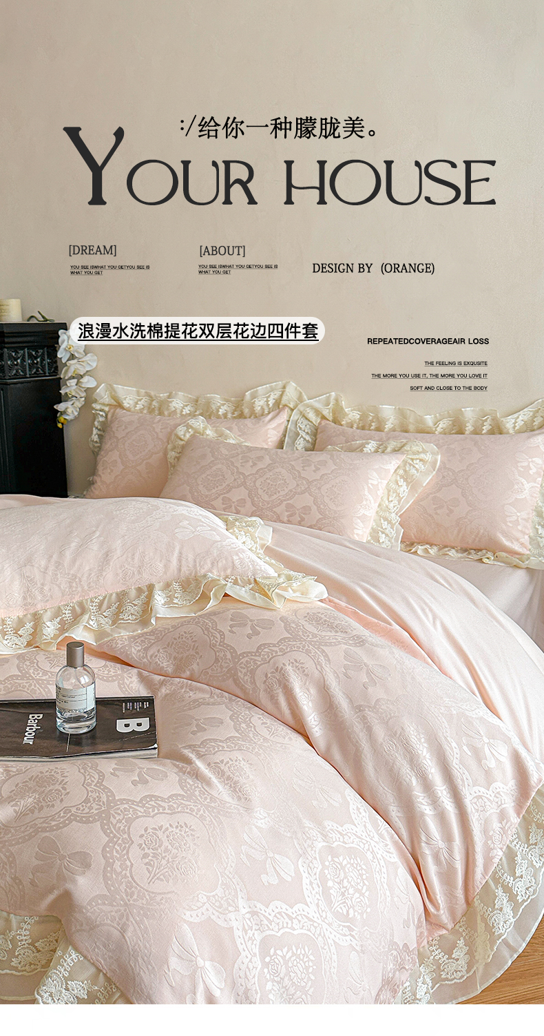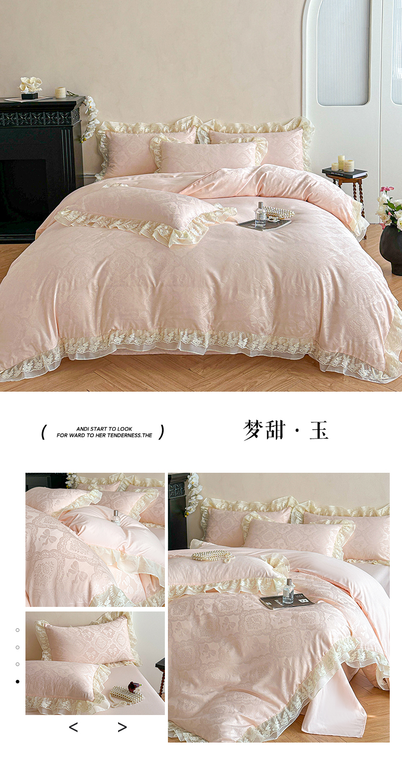 当前位置: 91家纺网 > 商品网购 > 床品套件 > 四件套 > 水洗棉四件套 > 你好美丽 2026新款水洗棉提花双层雪纺花边四件套-梦甜系列 梦甜玉