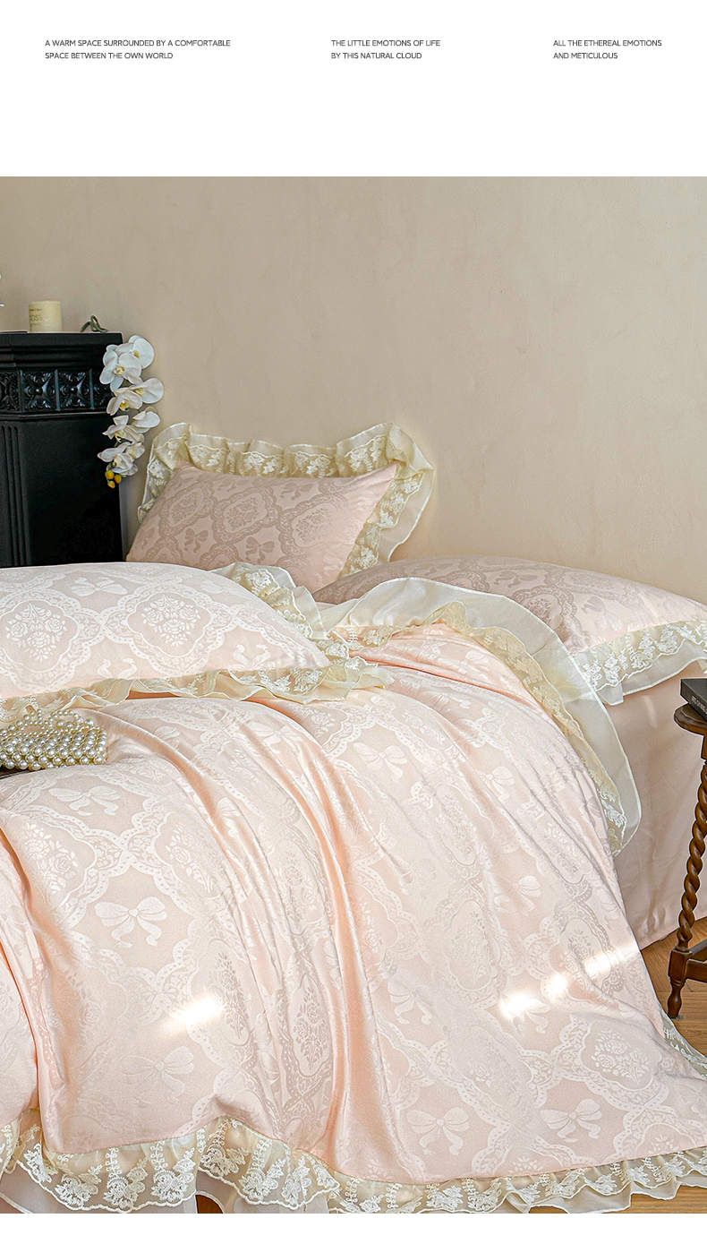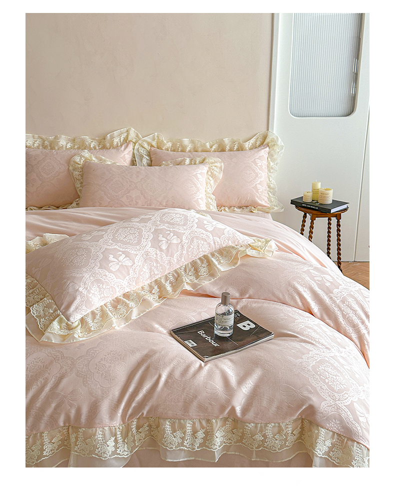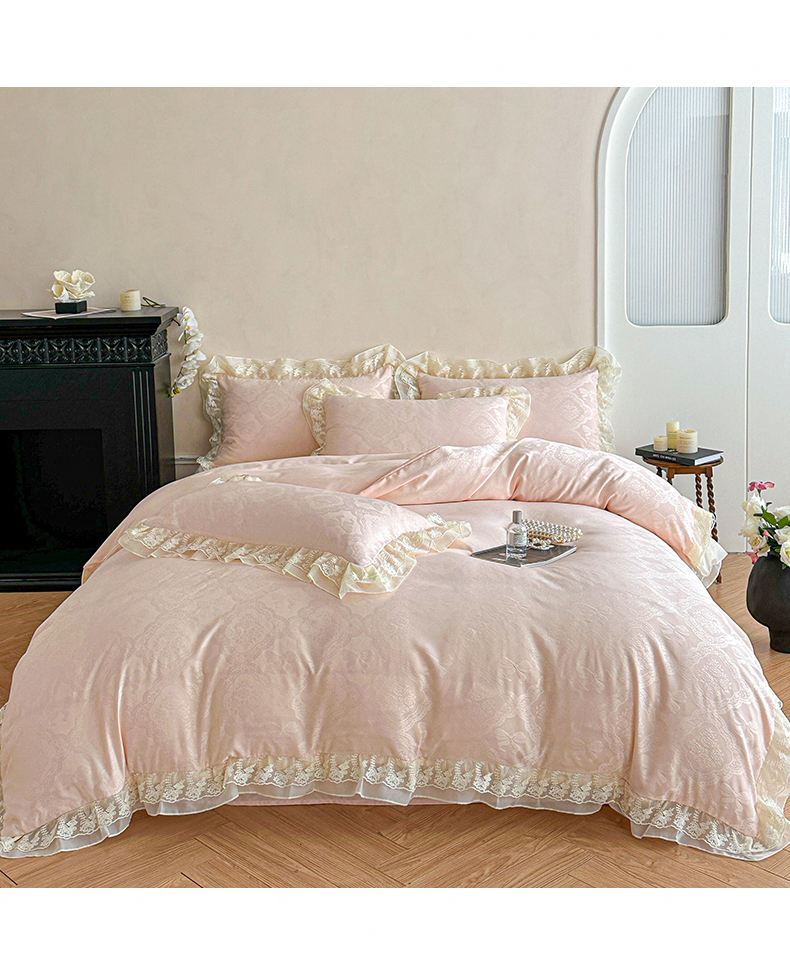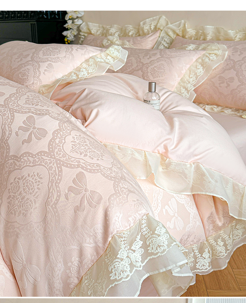 当前位置: 91家纺网 > 商品网购 > 床品套件 > 四件套 > 水洗棉四件套 > 你好美丽 2026新款水洗棉提花双层雪纺花边四件套-梦甜系列 梦甜玉