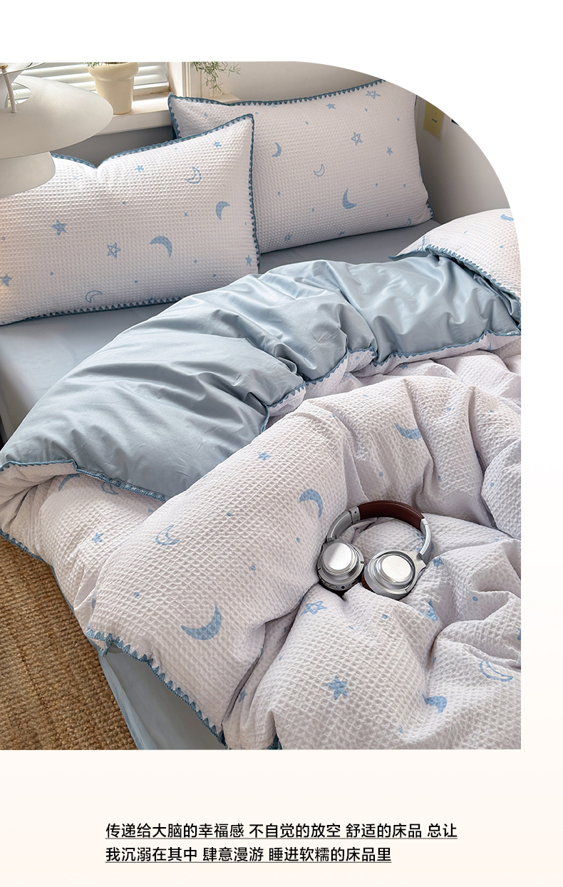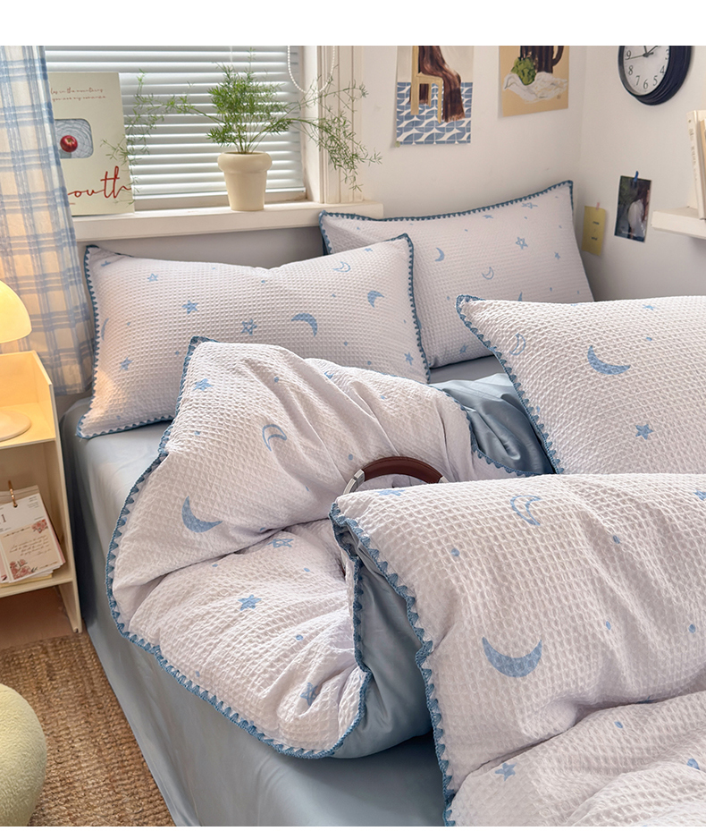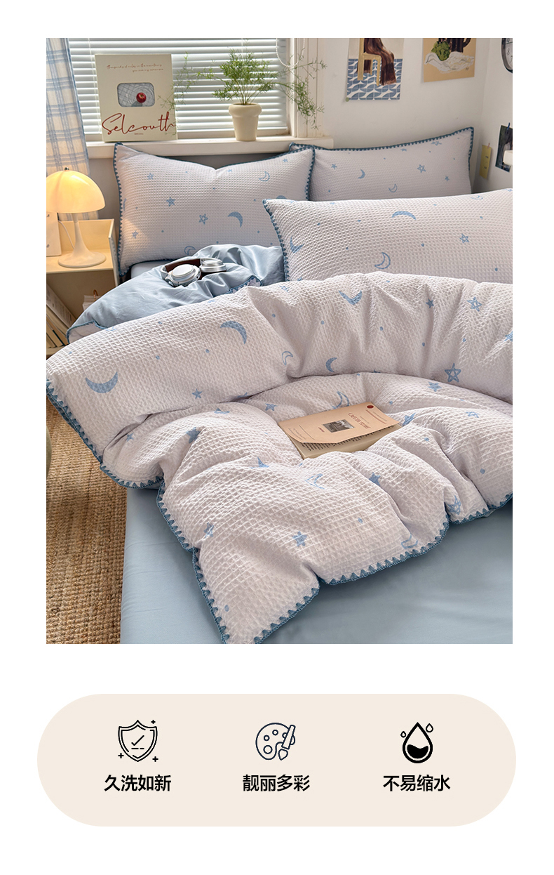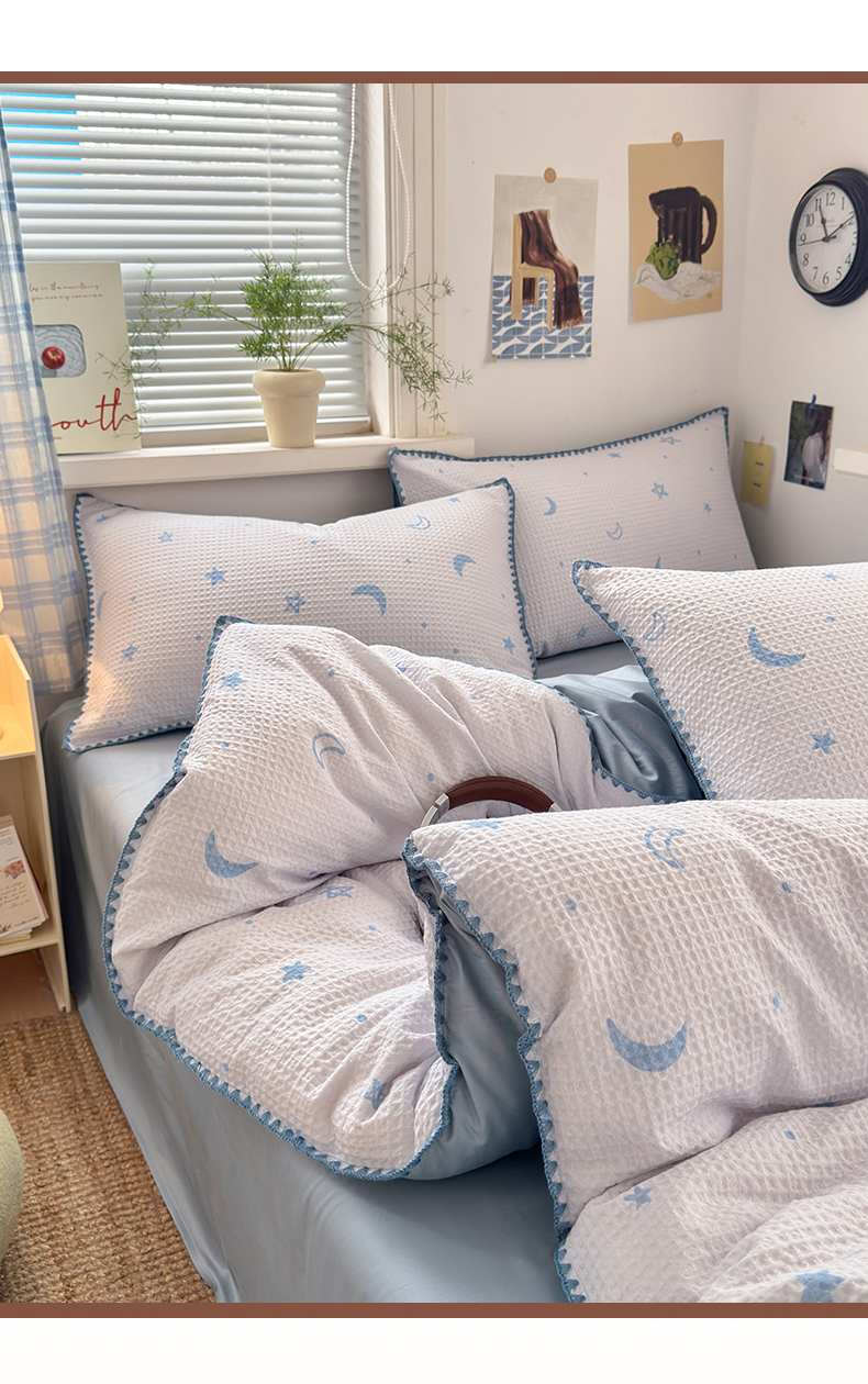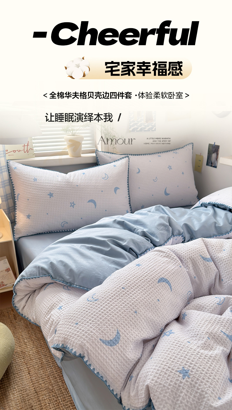 (总)曼之夏 2026新款A类全棉华夫格提花贝壳边四件套,风月-兰,光遇,简森-兰,卡布-白,萌动时光-咖,派克-灰,伊柠,云梦星河-兰