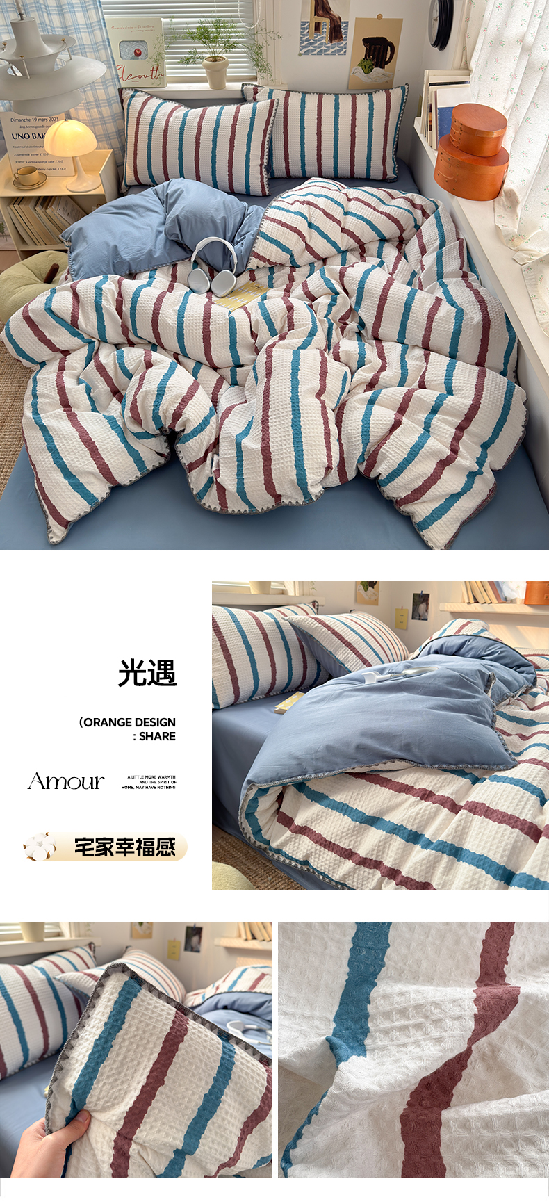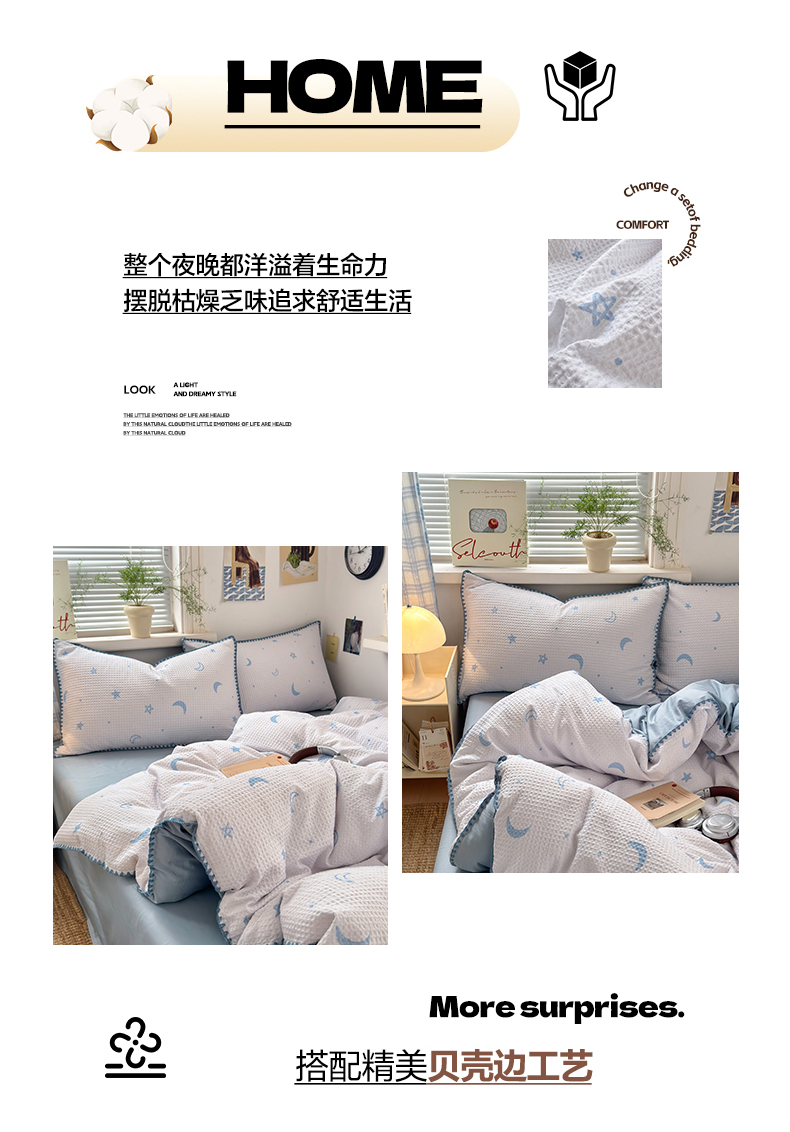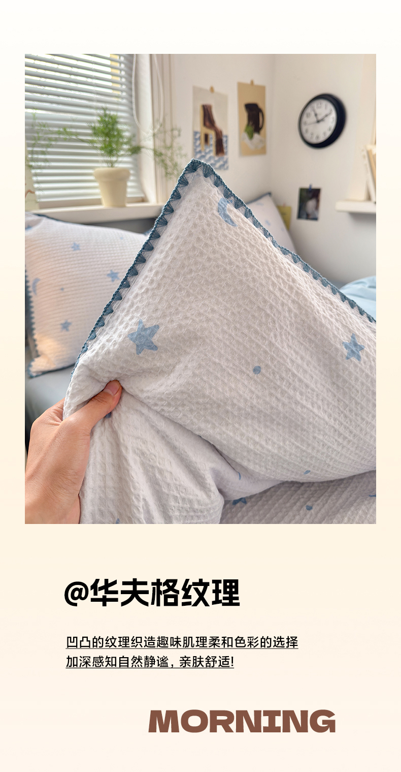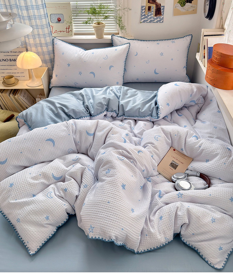 (总)曼之夏 2026新款A类全棉华夫格提花贝壳边四件套,风月-兰,光遇,简森-兰,卡布-白,萌动时光-咖,派克-灰,伊柠,云梦星河-兰