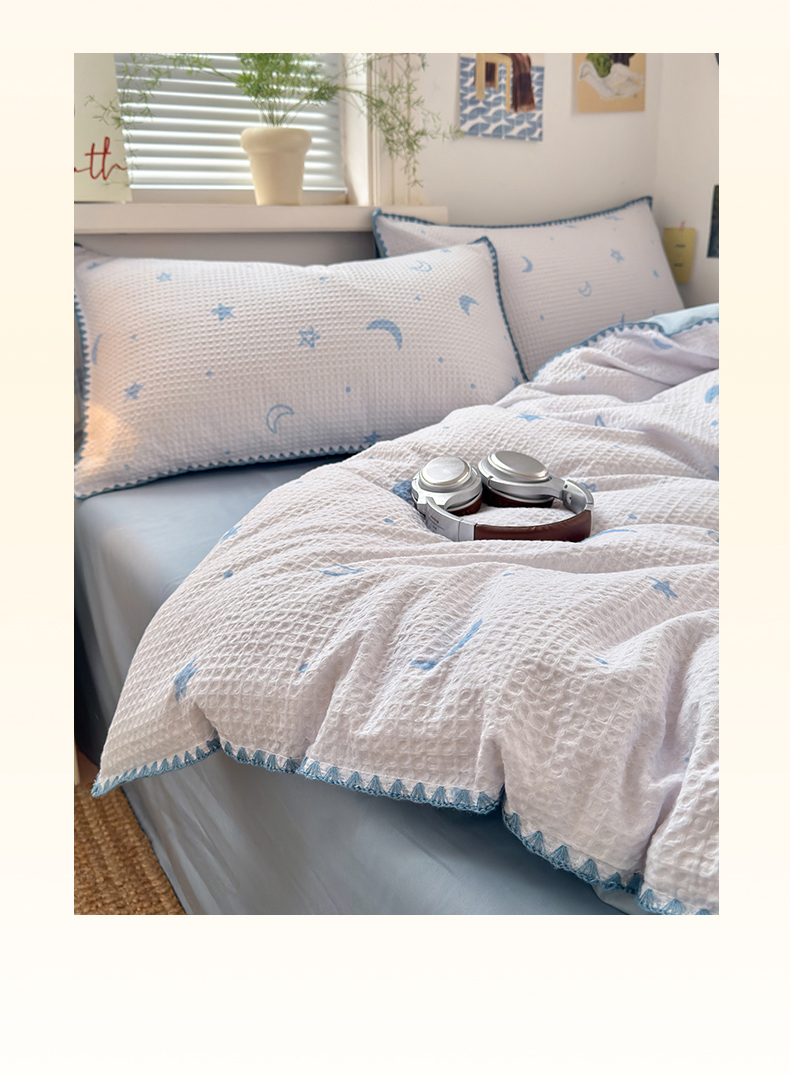 曼之夏 2026新款A类全棉华夫格提花贝壳边四件套 云梦星河-兰