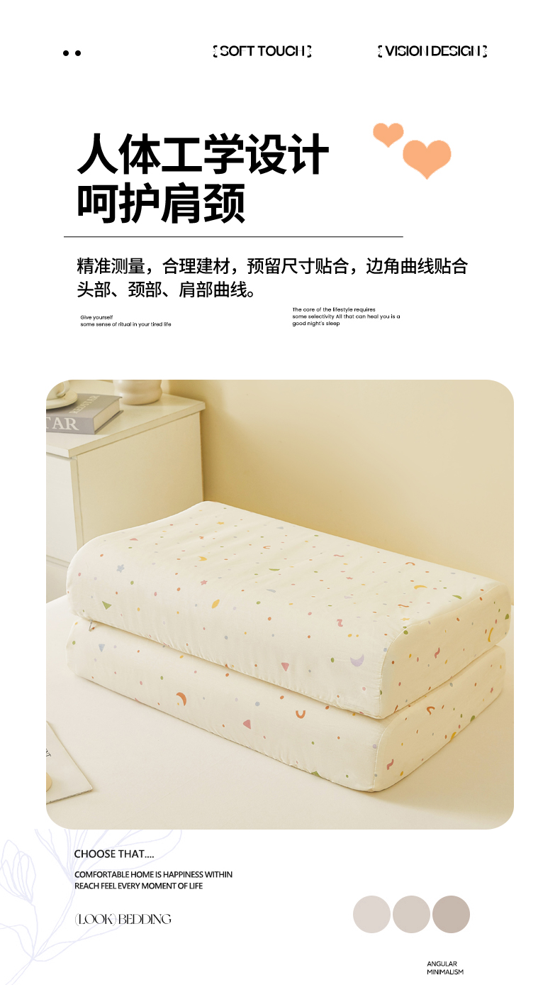 (总)翎盈家纺 2026款ins风小清新卡通纯棉乳胶枕专用枕套全棉波浪形枕头套