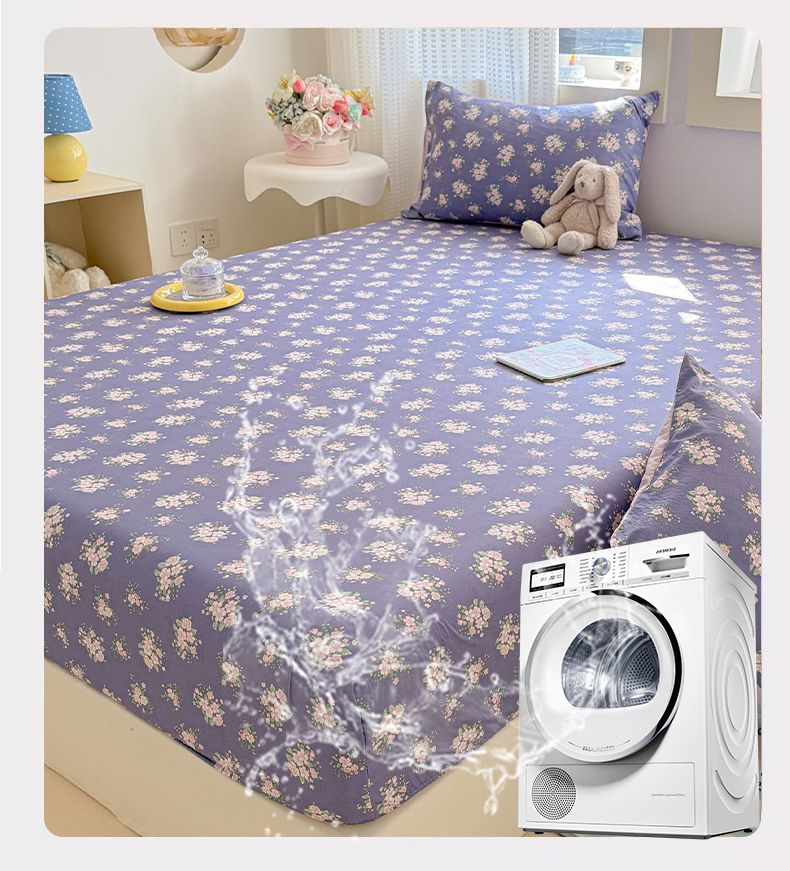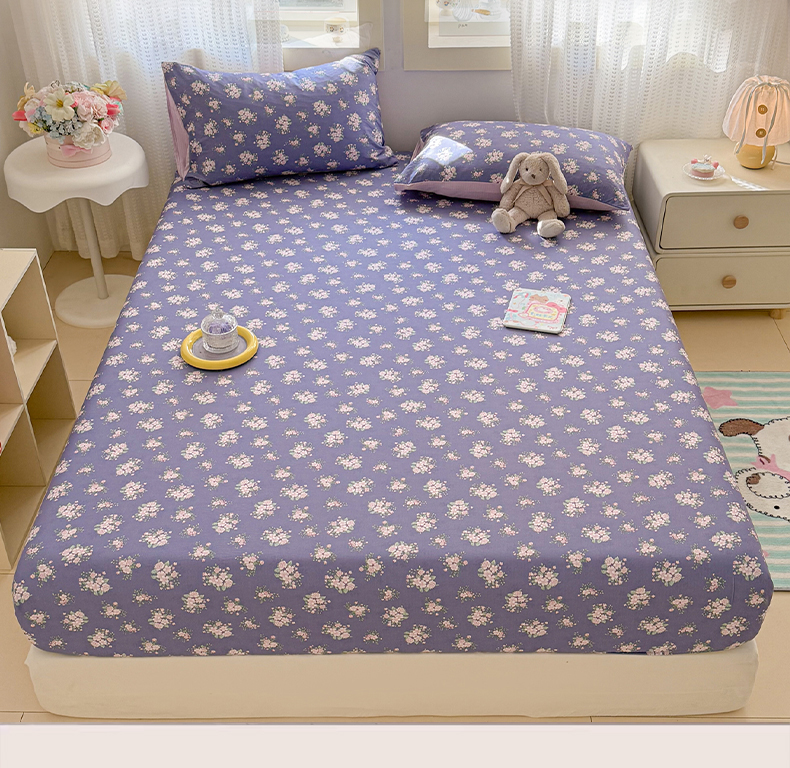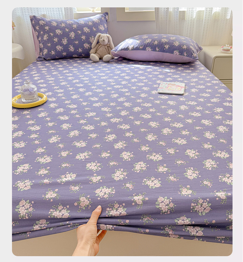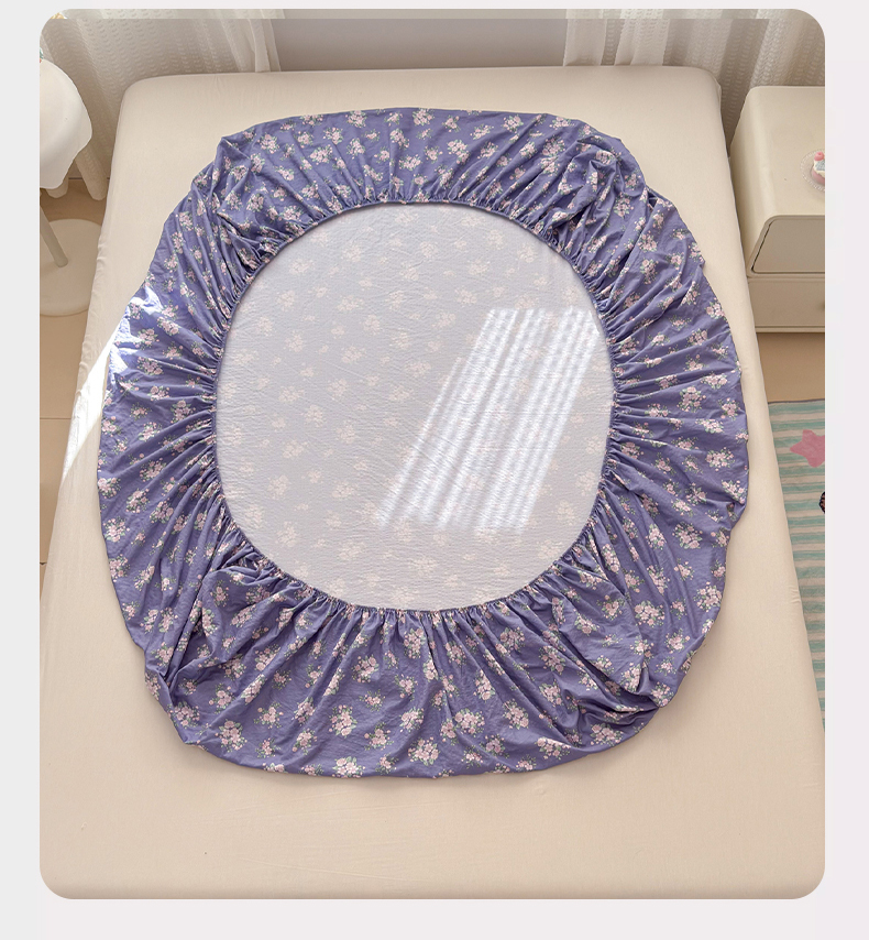 丽美人家纺 2026新款A类柔软双层皱皱纱印花单床笠床笠单件 浅紫花绒