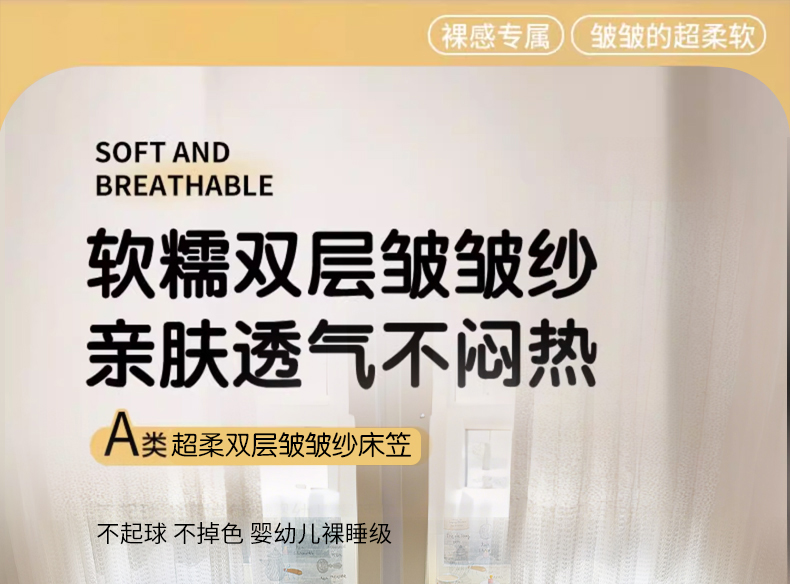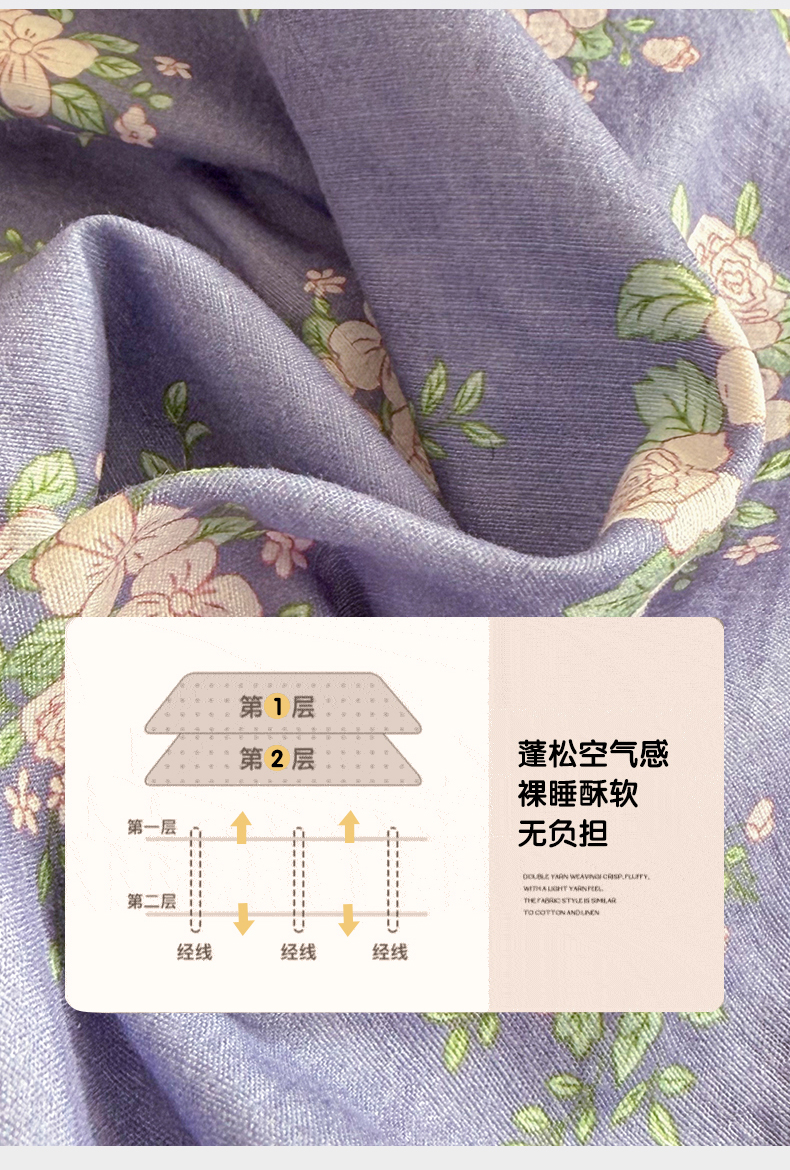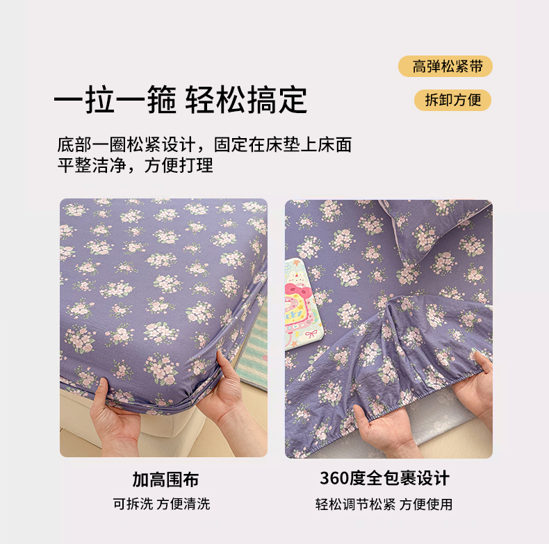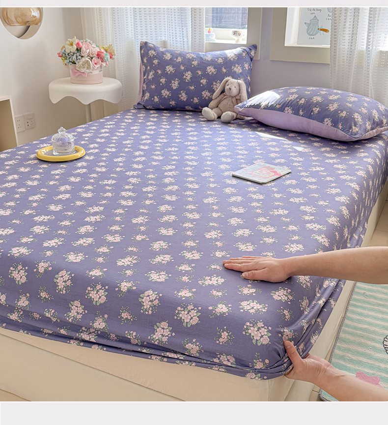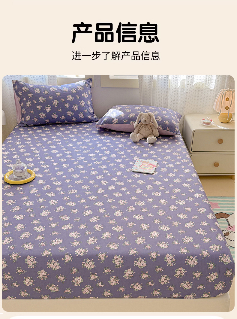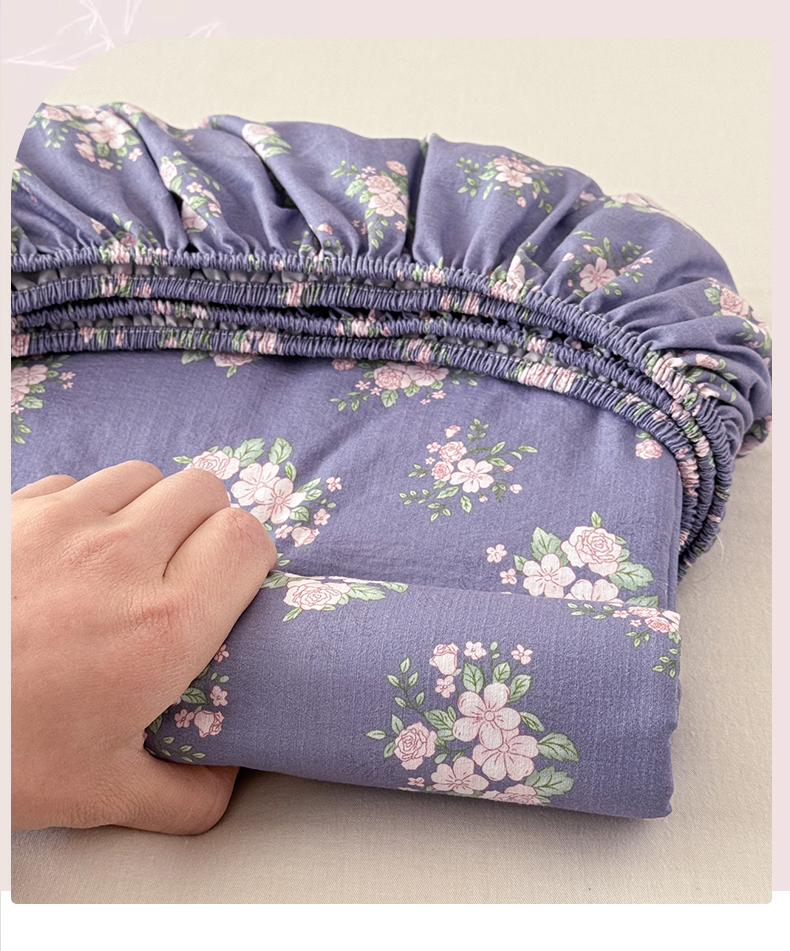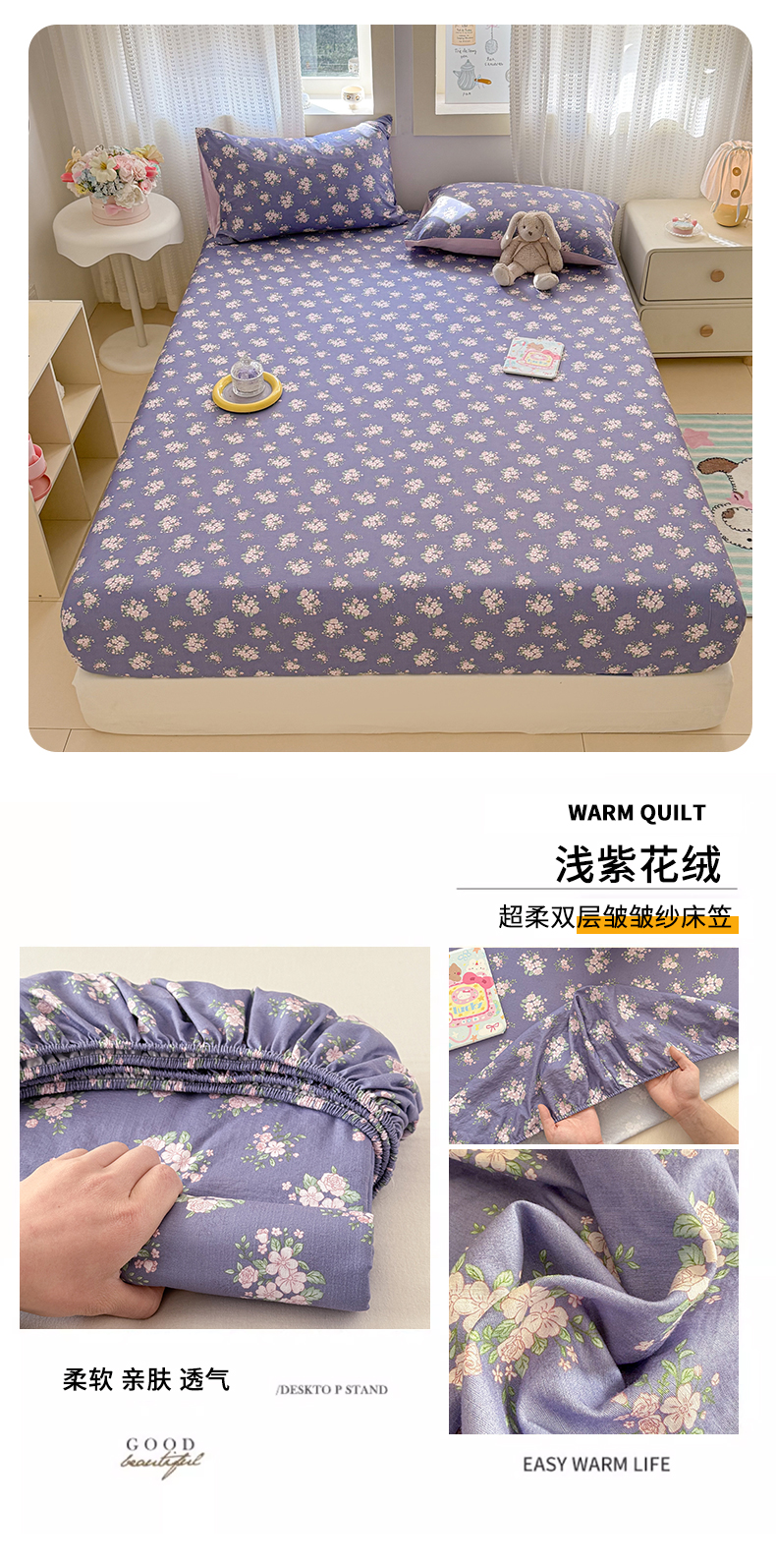 • 91家纺网 家纺一手货源 找家纺 丽美人家纺 2026新款A类柔软双层皱皱纱印花单床笠床笠单件 浅紫花绒