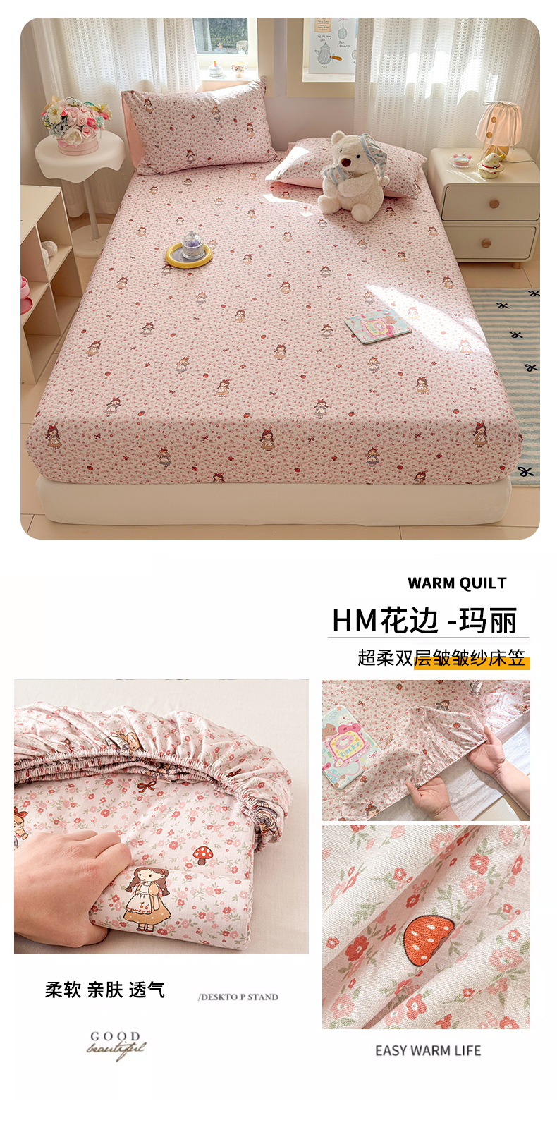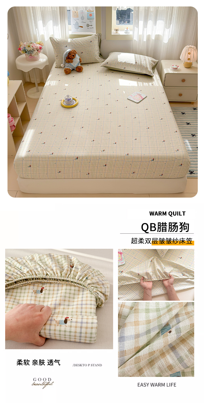 (总)丽美人家纺 2026新款双层皱皱纱大豆夹棉床笠单床笠床笠单件,JM花开漫漫,JM贝拉,JM布兰卡,JM粉格猫咪,JM格仔萌宠,JM可爱小狗,JM腊肠狗,JM乐园,JM玛丽,JM时光,JM月境骑踪,JM紫雾叶兔