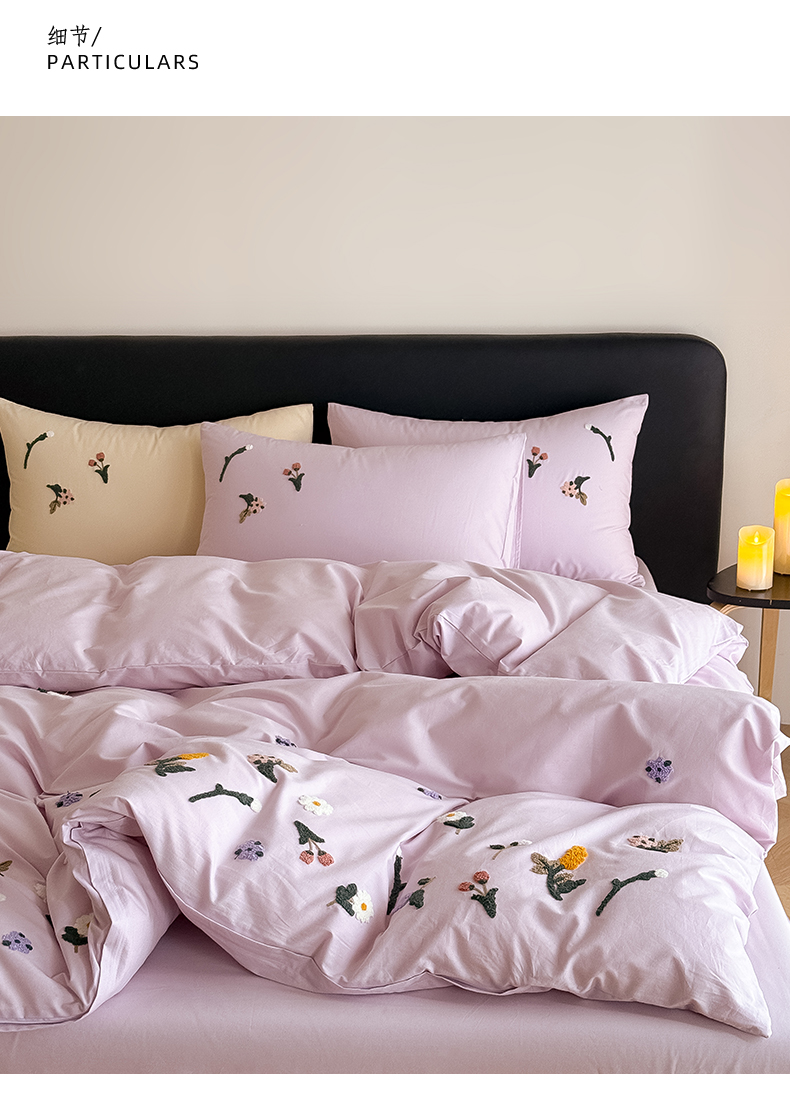 当前位置: 91家纺网 > 商品网购 > 床品套件 > 四件套 > 全棉普通四件套 > Mr.pig猪先生水洗棉 2026新款全棉水洗棉毛巾绣四件套-花絮(展示价格为控价,实际价格请联系客服) 花絮-微微紫