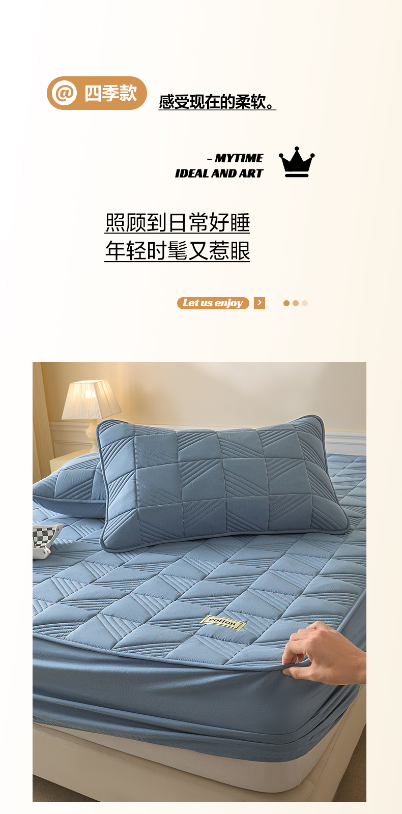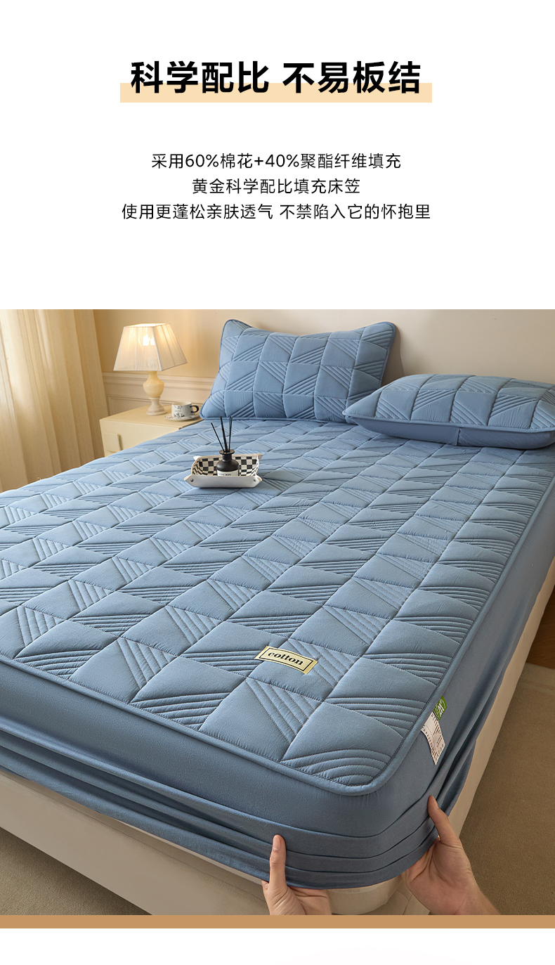 • 91家纺网 家纺一手货源 找家纺 芬晴家纺 2026新款全棉纯棉夹棉棉花床笠单床笠-方纹系列 方纹-雾蓝