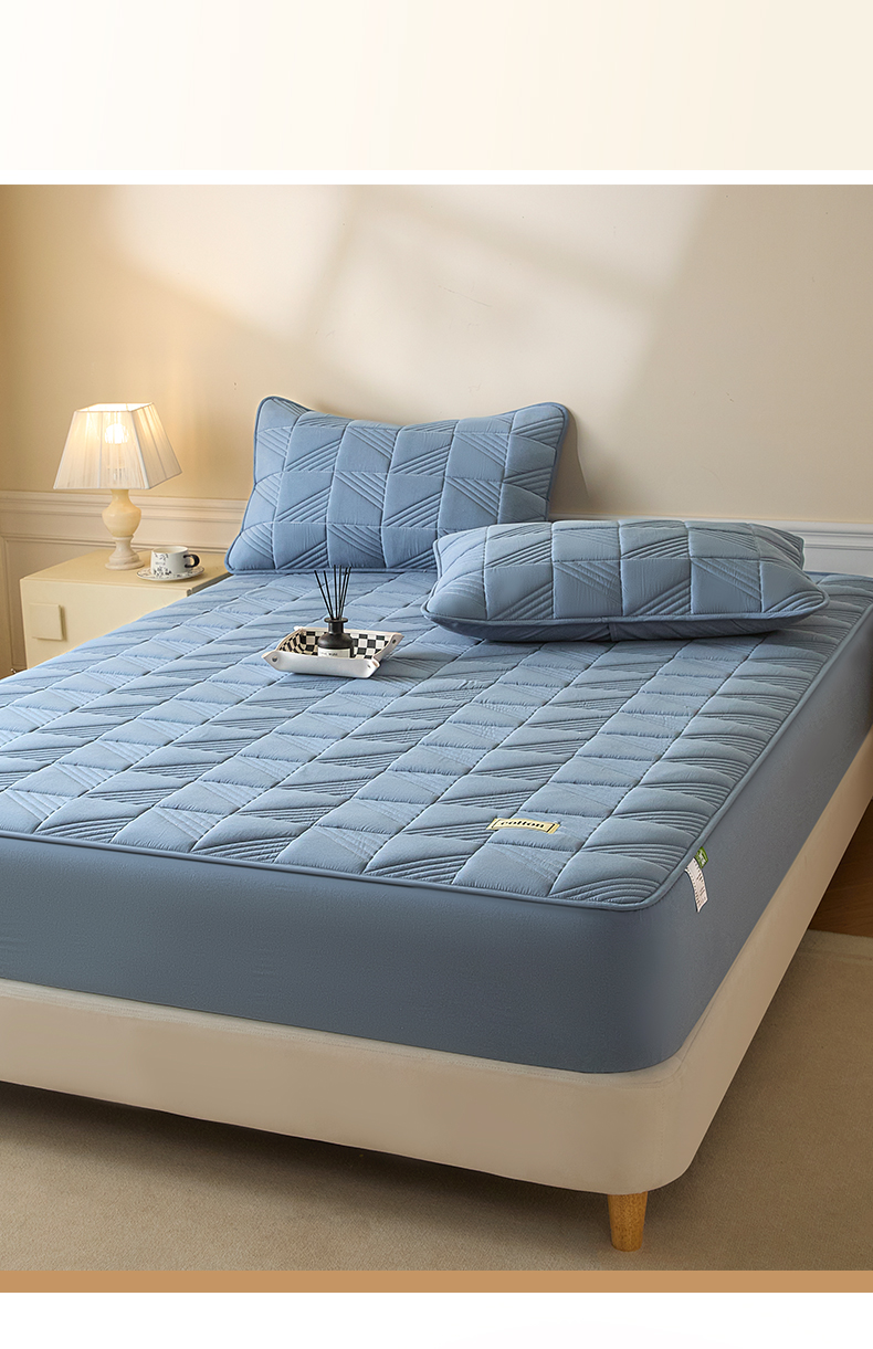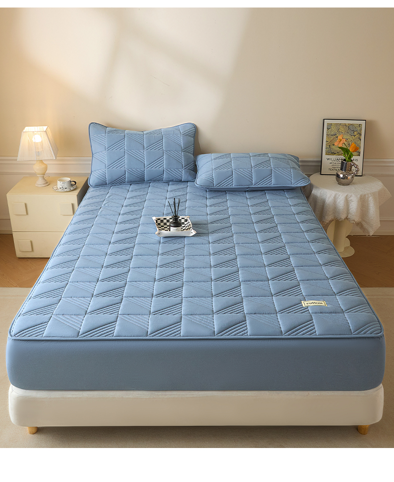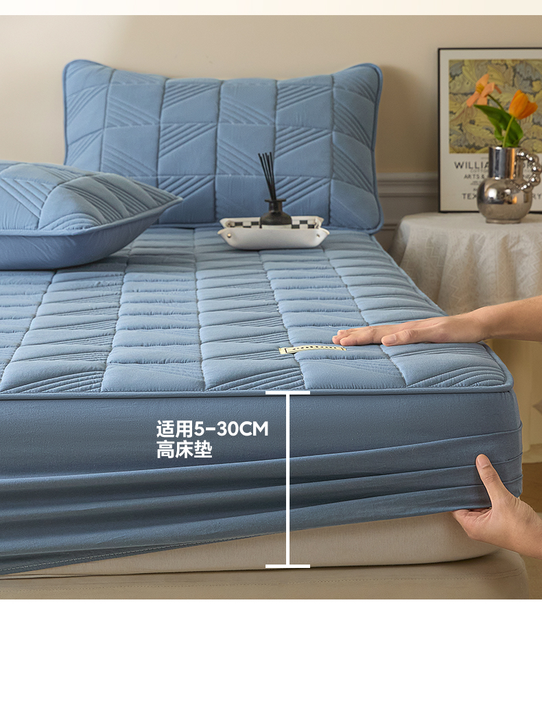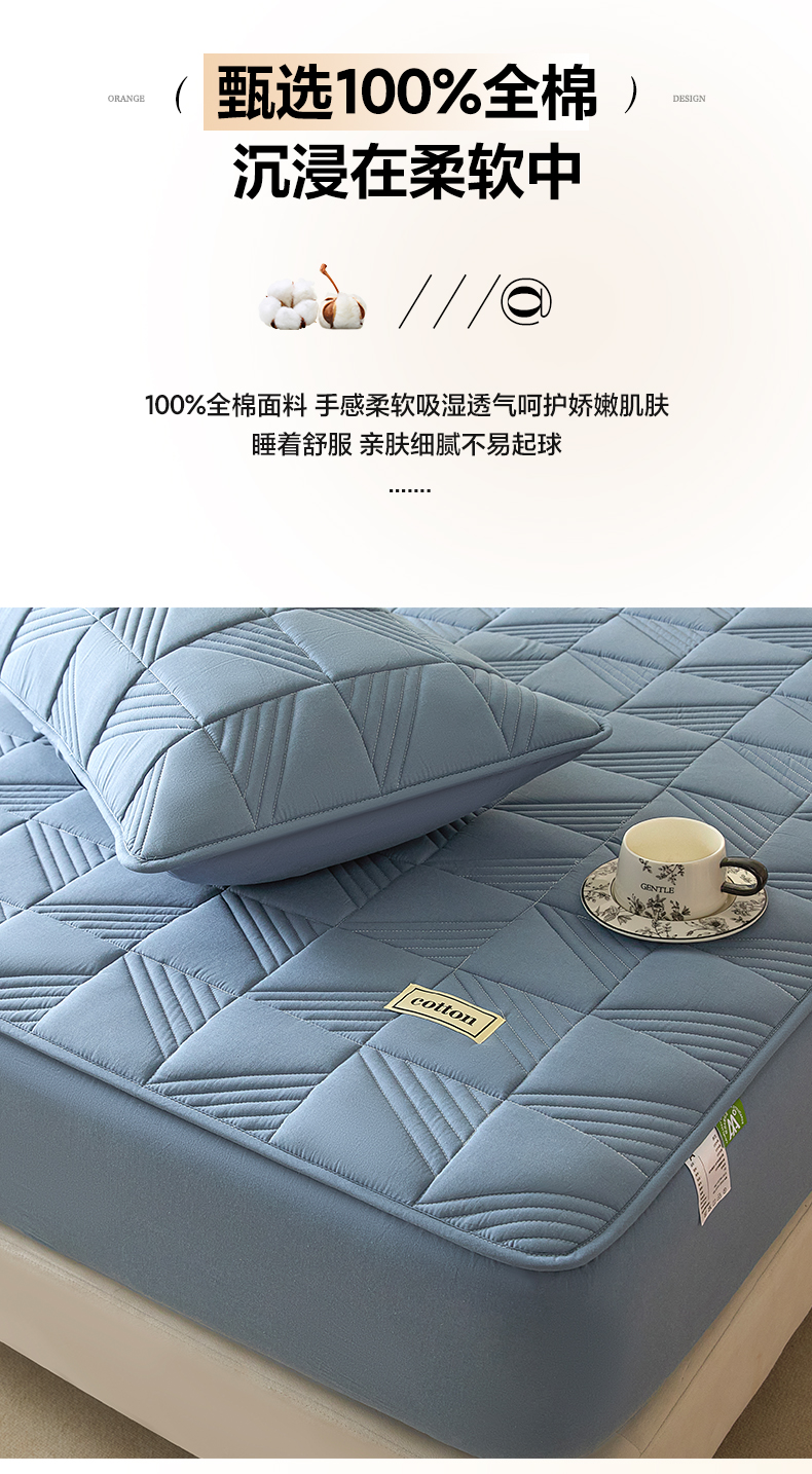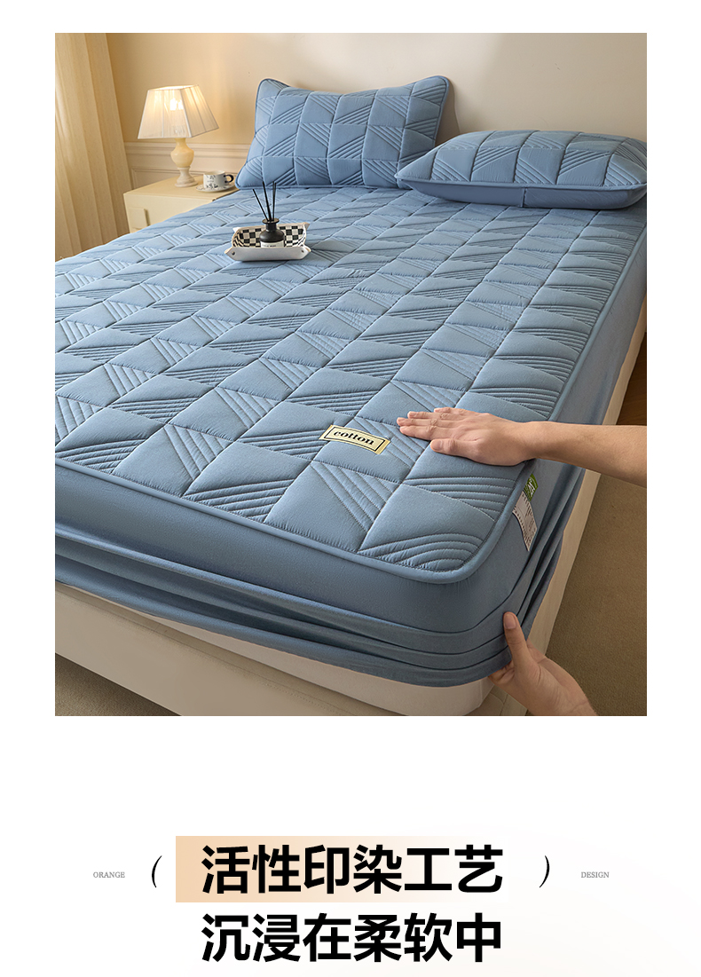 芬晴家纺 2026新款全棉纯棉夹棉棉花床笠单床笠-方纹系列 方纹-雾蓝