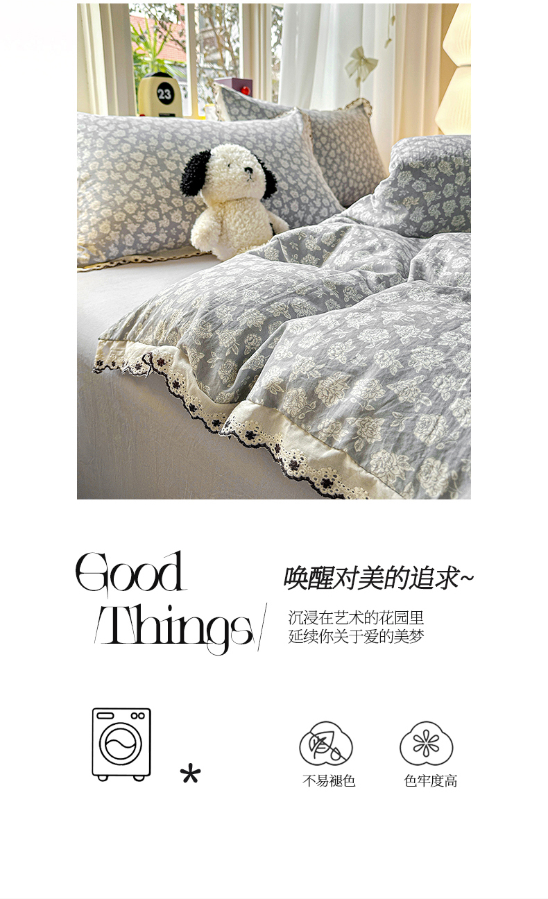 当前位置: 91家纺网 > 商品网购 > 床品套件 > 四件套 > 全棉普通四件套 > 韩秀家纺 2026新款A类纺棉四件套全棉花边古法水洗棉法式蕾丝花边四件套 瑰丽庄园
