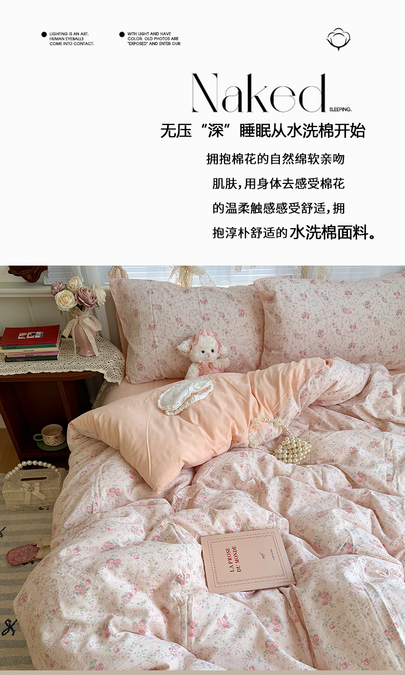 当前位置: 91家纺网 > 商品网购 > 床品套件 > 四件套 > 水洗棉四件套 > 原素 2026新春ins博主风双拼小碎花花卉水洗棉纱四件套 彩色樱桃