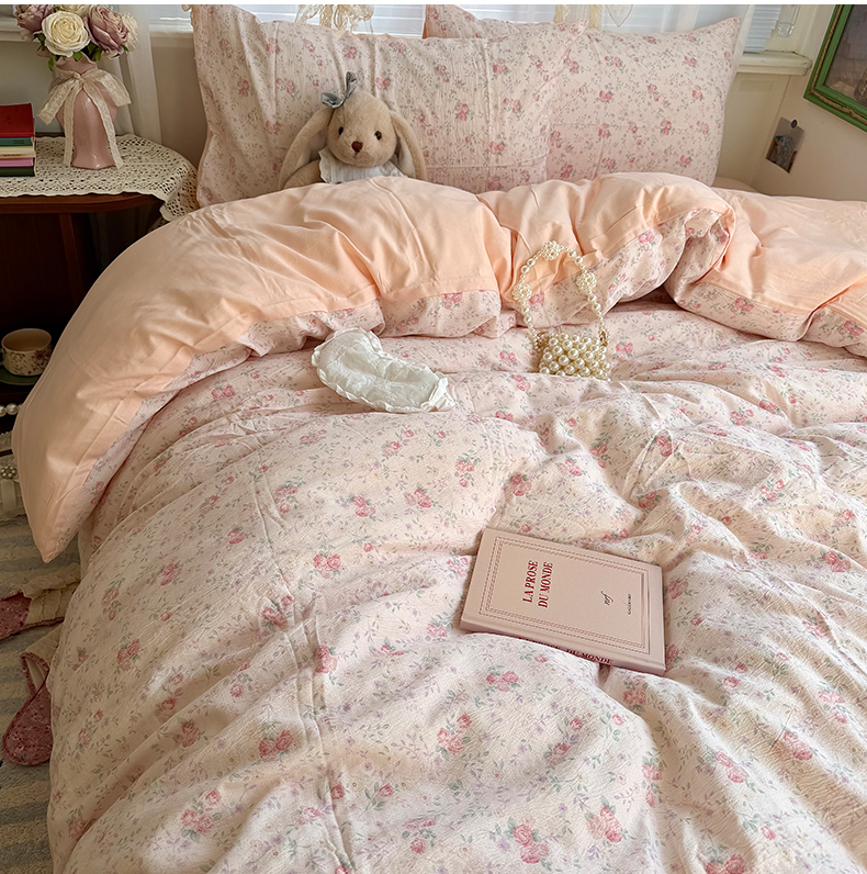 当前位置: 91家纺网 > 商品网购 > 床品套件 > 四件套 > 水洗棉四件套 > 原素 2026新春ins博主风双拼小碎花花卉水洗棉纱四件套 碎花粉格