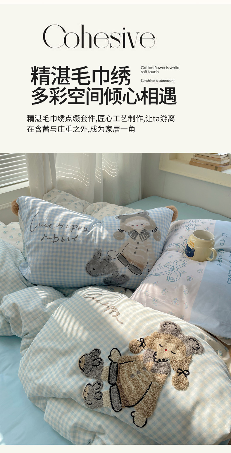 商品名称:(总)丽涵家纺 2026新款全棉数码印花毛巾绣四件套-少女派