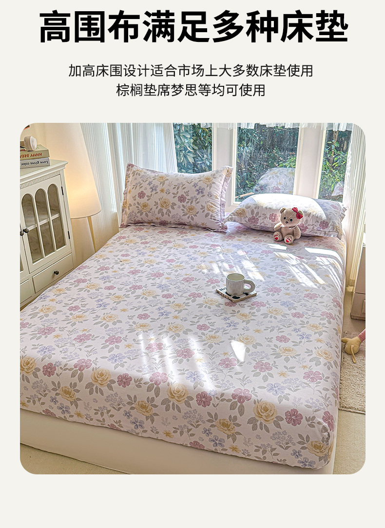 帛织澜家纺 2026新款A类新疆全棉纯棉12868单品印花床笠系列(预留缩水,提供质检报告) 繁花锦年