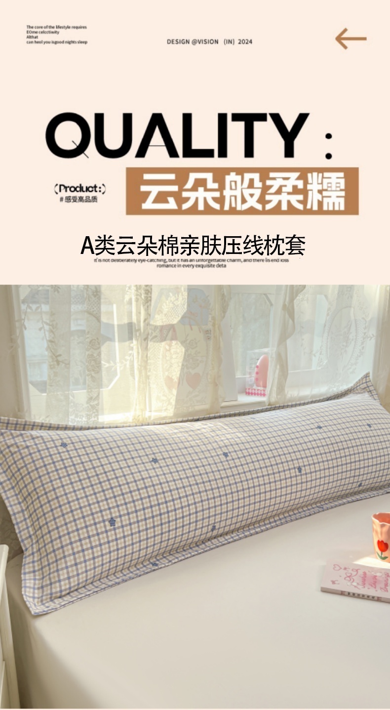 商品名称:梦舒羽 2026新款A类云朵棉单层枕套1.8米情侣双人加长枕芯内胆套-单层压线 幸运星(单层压线)