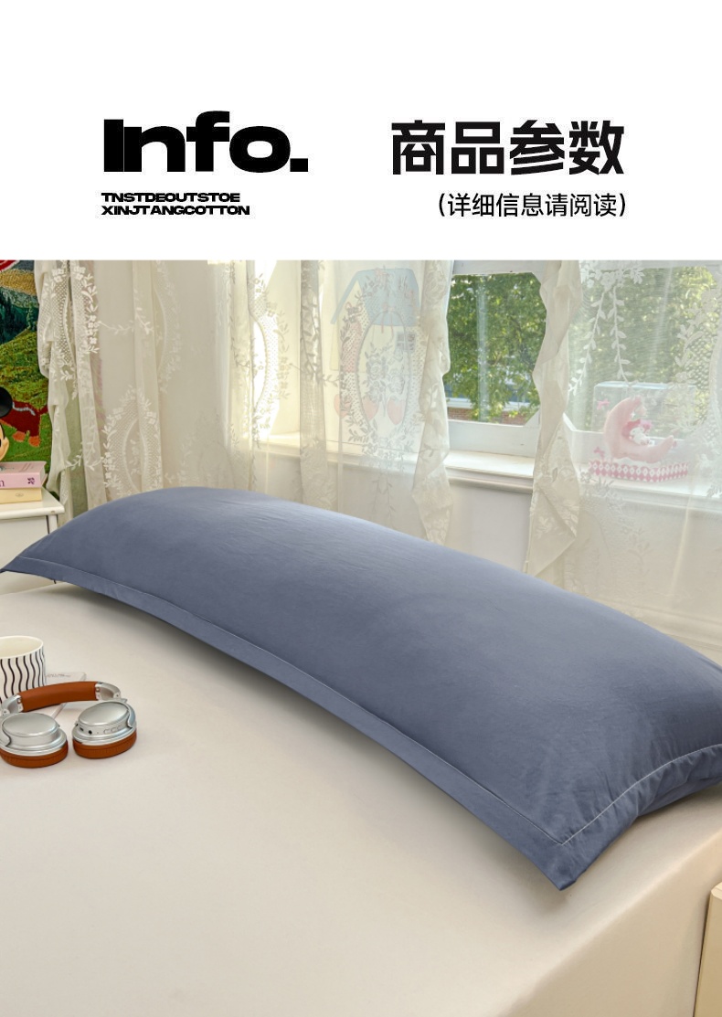 商品名称:圣比熊 2026新款A类云朵棉单层枕套1.8米情侣双人加长枕芯内胆套-单层压线 藏海蓝(单层压线)