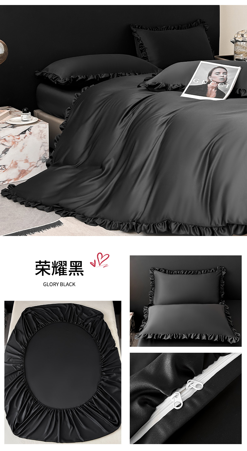 (总)乐卧家居 2026新款哑光仿真丝高级感卧室时尚四件套-比弗利系列,比弗利-高级灰,比弗利-荣耀黑,比弗利-香槟金,比弗利-优雅粉,比弗利-月光白