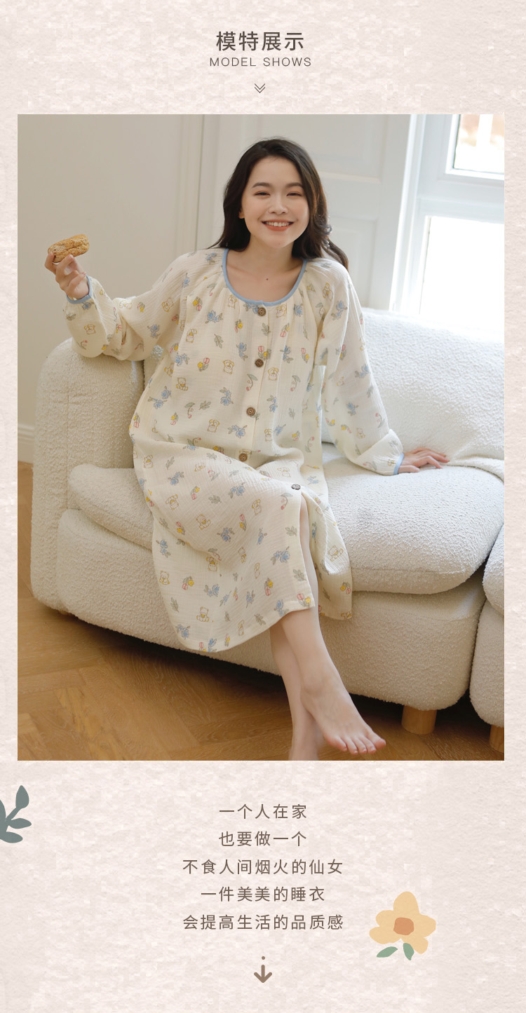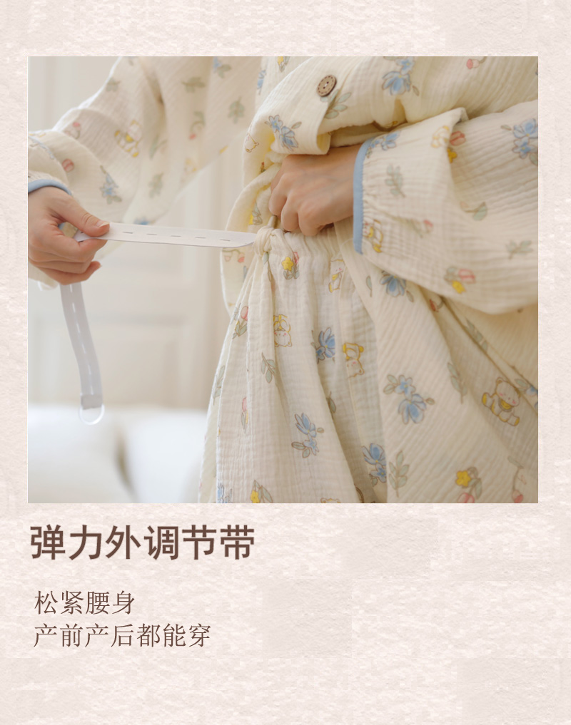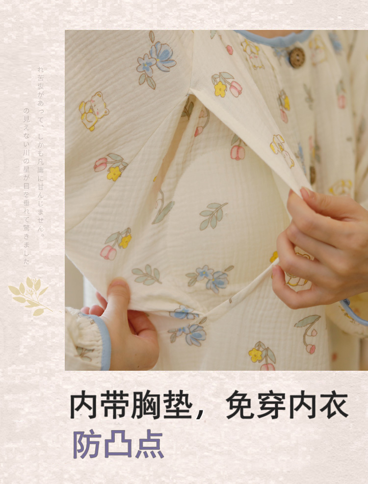 商品名称:洛兰沙家居馆 2026新款带胸垫纯棉纱布月子服待产裙春夏秋季孕妇哺乳睡裙喂奶医院进产房 月子服1