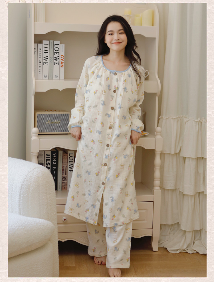 (总)洛兰沙家居馆 棉质秋冬空气棉厚款印花女款睡衣家居服舒适三层夹棉居家,花色1