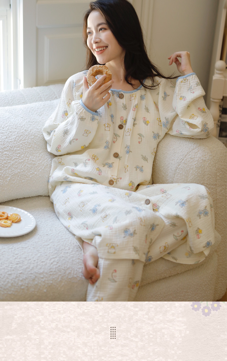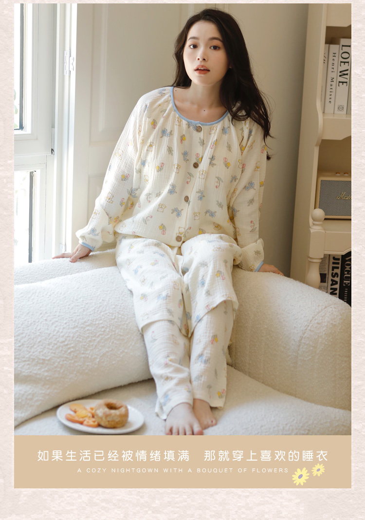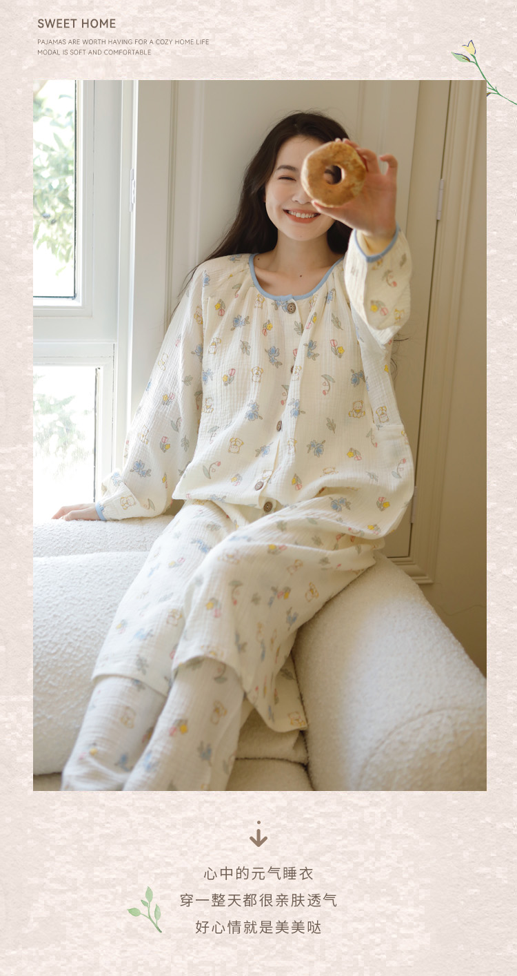 (总)洛兰沙家居馆 纯棉纱布睡衣女士绉布套装双层纱布荷叶领长袖长裤家居服女套装 ,花色1,花色2,花色3,花色4,花色5,花色6,花色7,花色8,花色9,花色10,花色11,花色12