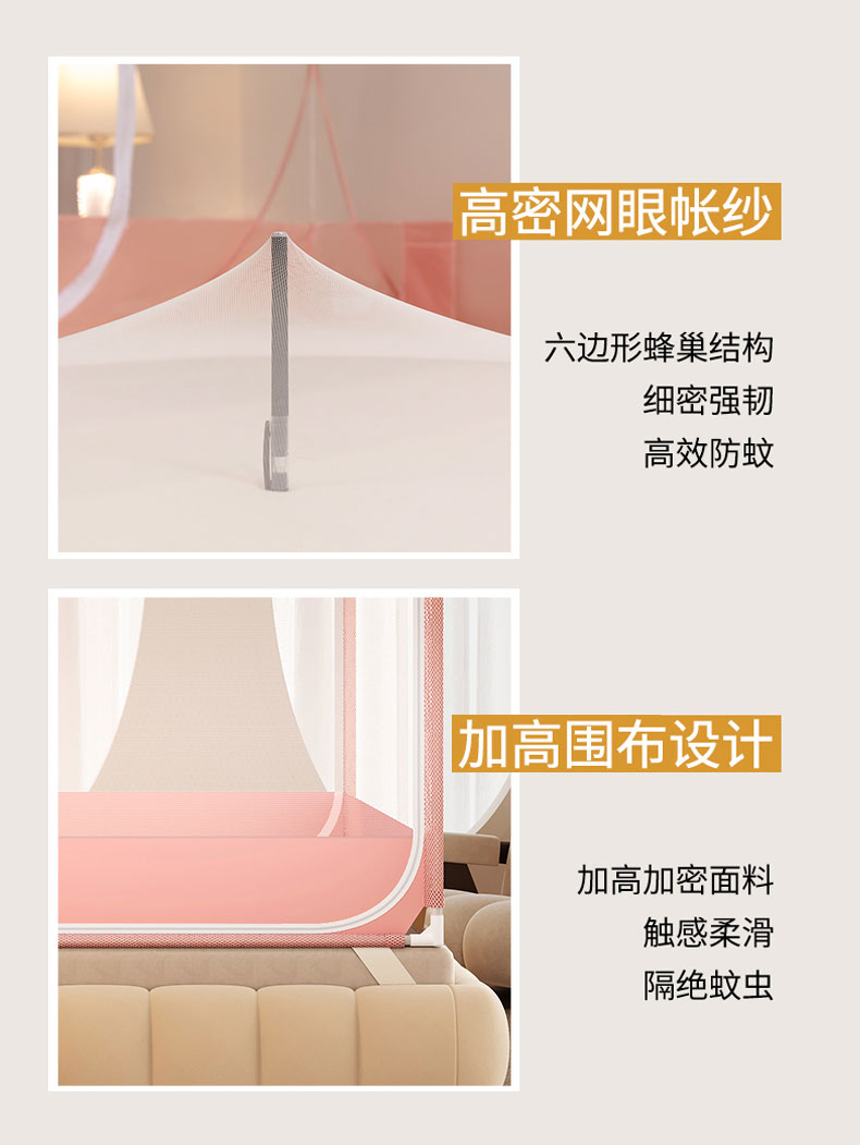 (总)青竹苑 2026新款免安装大顶花边款魔术蚊帐,初恋粉,初恋蓝,加密灰,加密蓝,条纹灰,条纹蓝