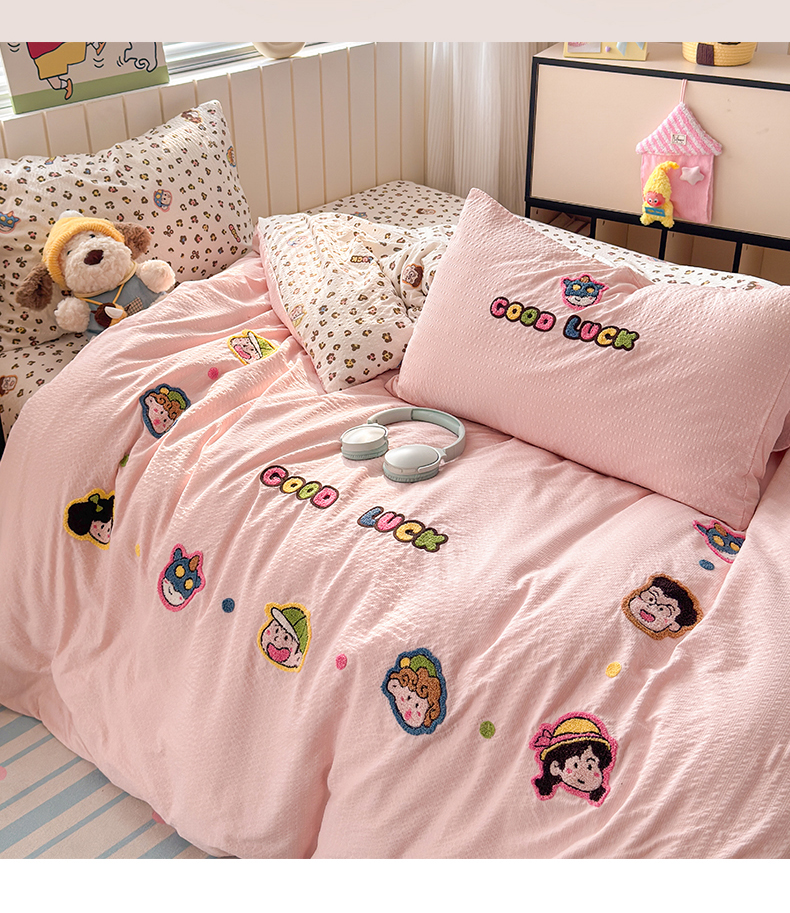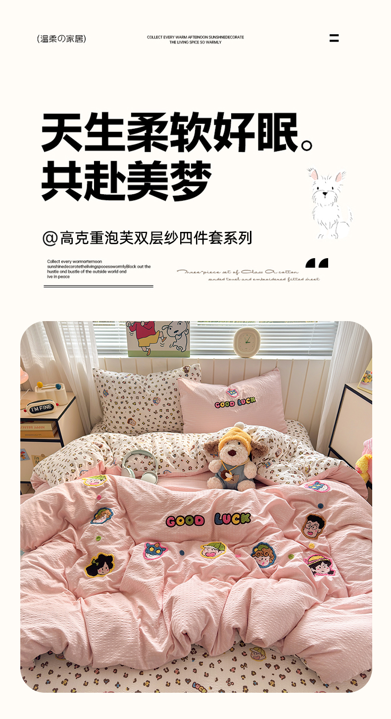 当前位置: 91家纺网 > 商品网购 > 床品套件 > 四件套 > 其它四件套 > 三元色 2026新款泡芙双层纱豹纹系列四件套 野原一家-粉