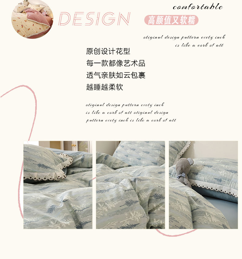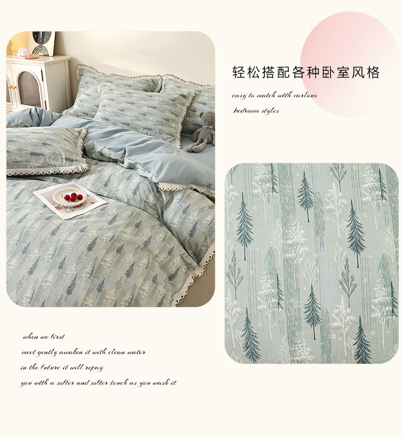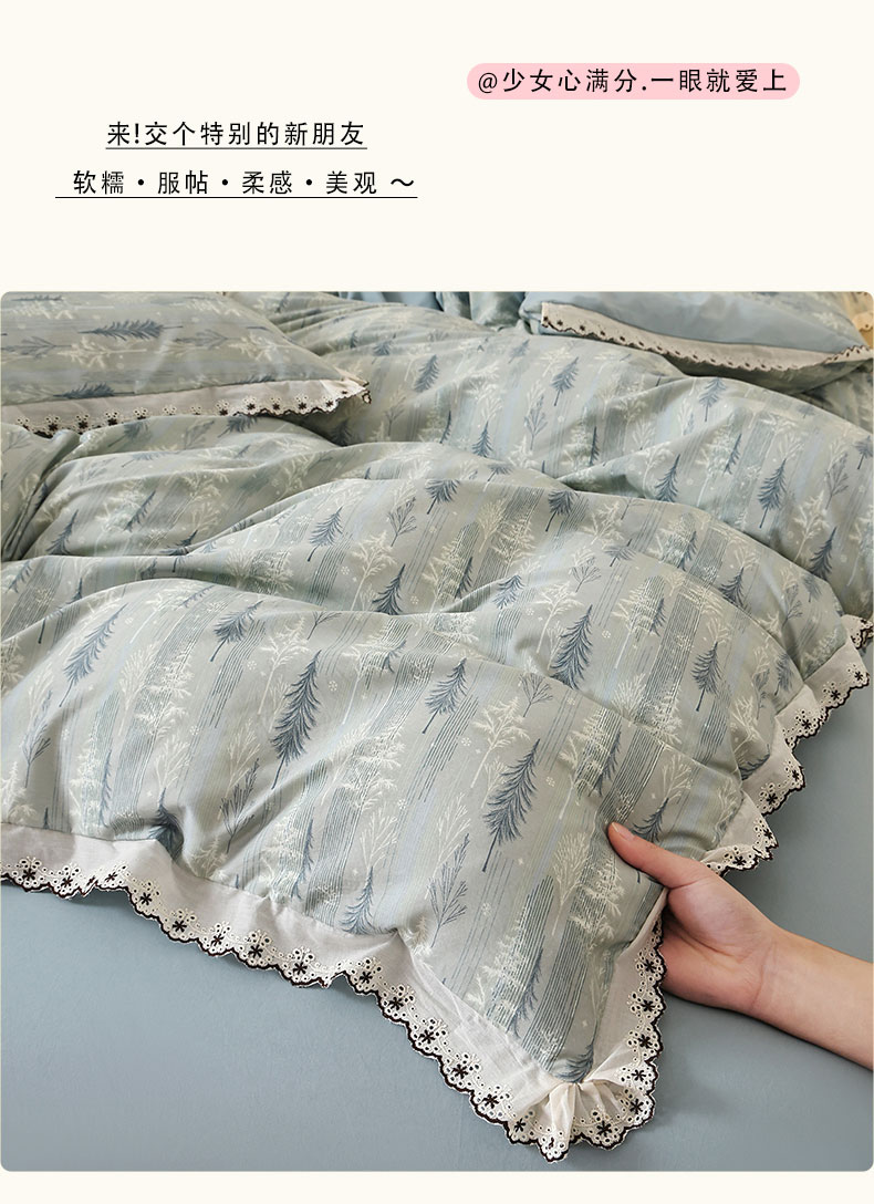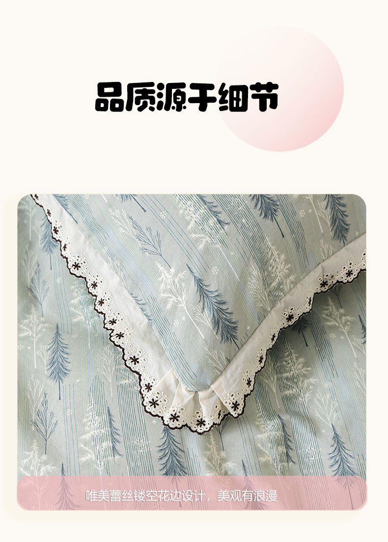 商品名称:北部居 2026新款水洗仿棉韩版花边款田园复古风小清新四件套 松野