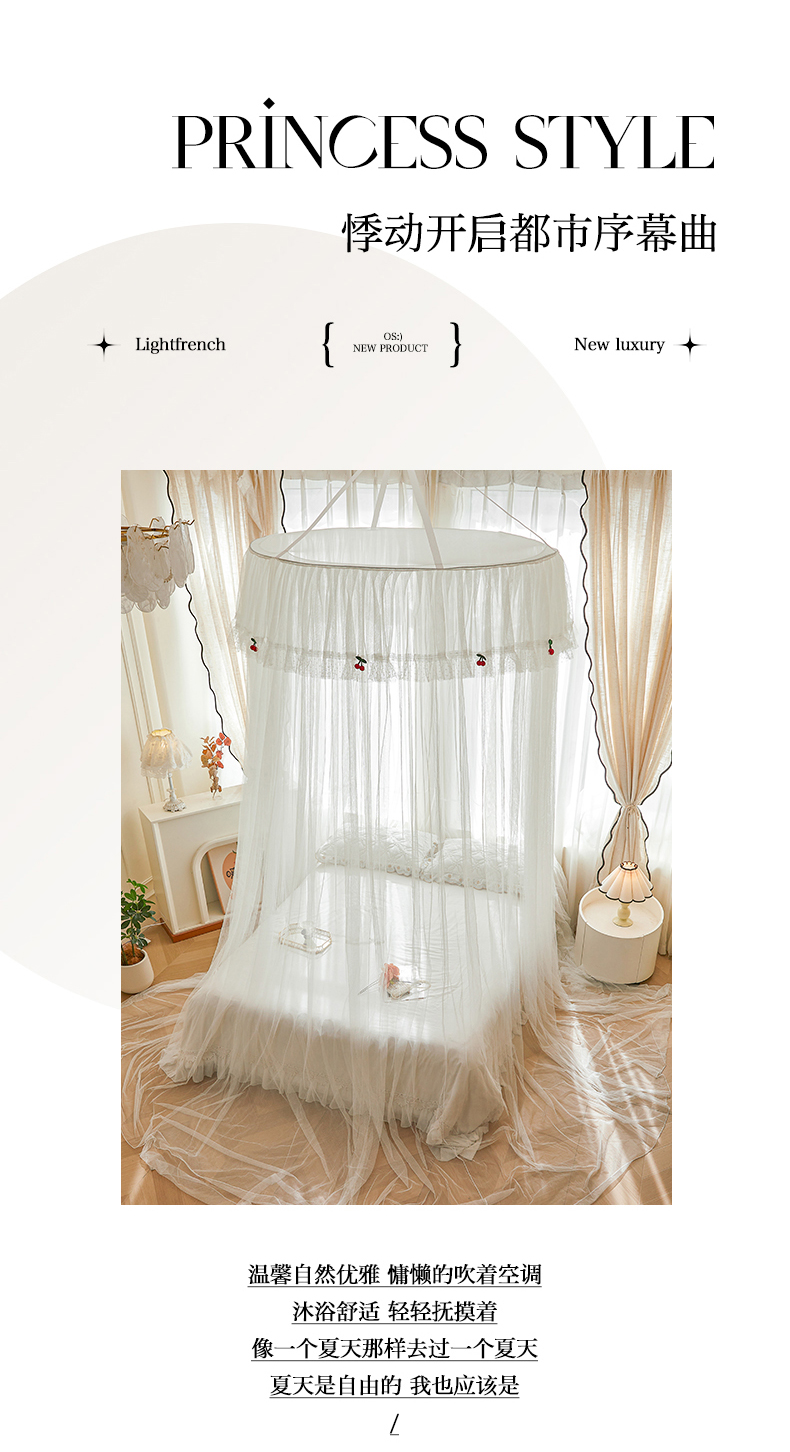 (总)雪姿家纺 2024新款唯美蕾丝圆顶蚊帐-颜汐,颜汐-暖玉,颜汐-雅白,颜汐-海洋兰,颜汐-抹茶绿,颜汐-胭脂粉,颜汐-时尚灰