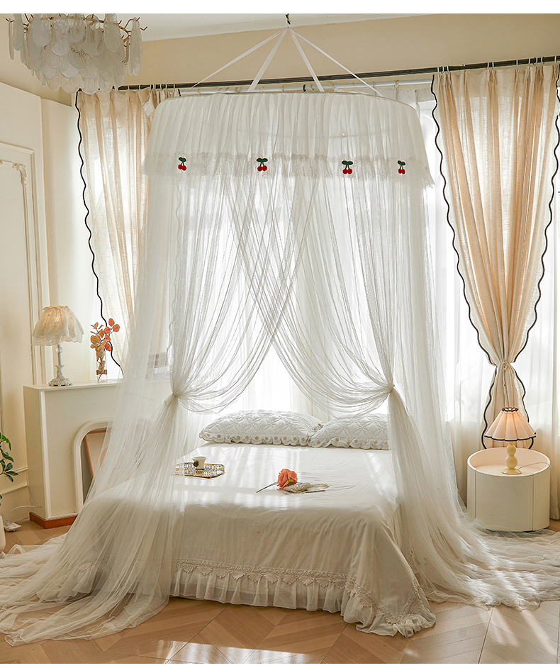 (总)雪姿家纺 2026新款刺绣花边落地宫廷外穿杆蚊帐-落地樱桃,刺绣花边樱桃-烟岚紫灰,刺绣花边樱桃-白色,刺绣花边樱桃-清爽茶绿,刺绣花边樱桃-温柔杏色,刺绣花边樱桃-温馨粉玉