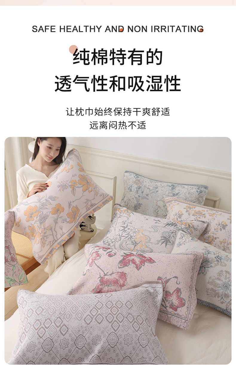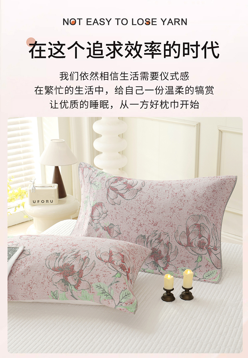 当前位置: 91家纺网 > 商品网购 > 床上用品 > 枕巾垫巾 > 朴尔家纺-毛巾被 2026新品多彩棉素雅色织提花纯棉纱布枕巾 红莲絮语