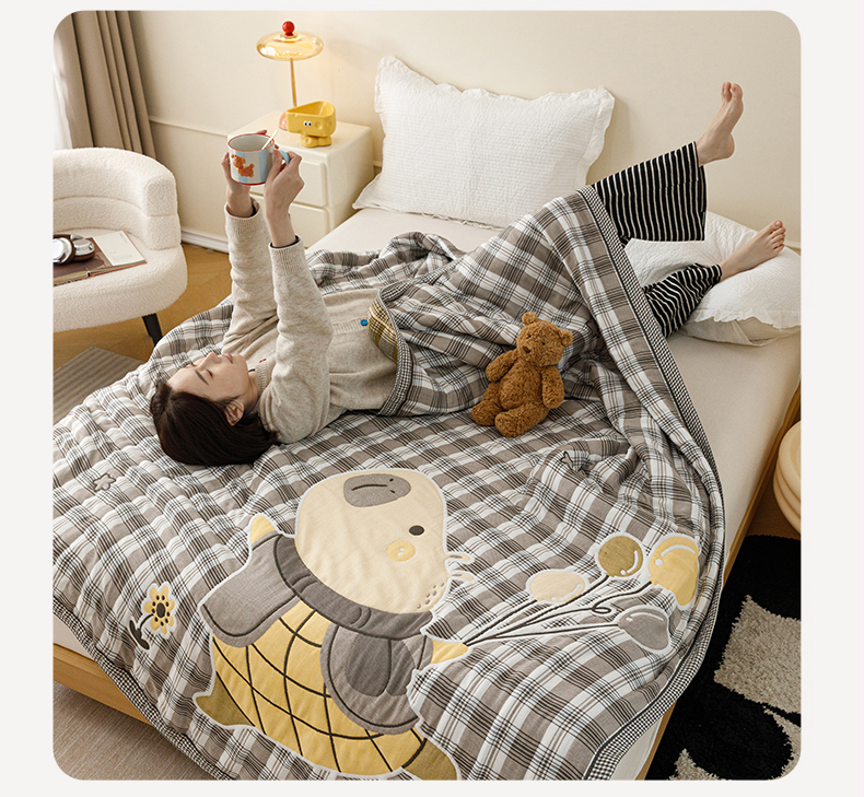 朴尔家纺-毛巾被 2026新品十层轻肤纯棉云朵棉色织提花纱布泡芙被毛巾被 萌萌宝贝
