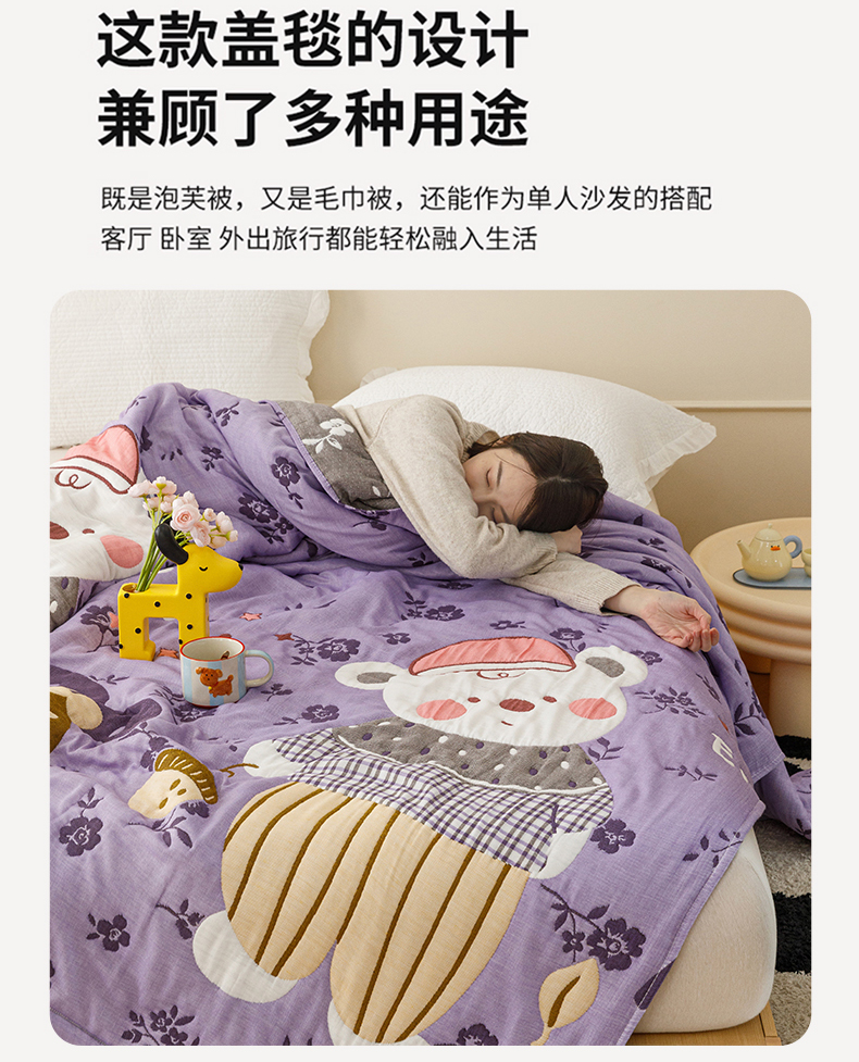 (总)朴尔家纺-毛巾被 2026新品十层轻肤纯棉云朵棉色织提花纱布泡芙被毛巾被,贝尔熊-蓝,贝尔熊-紫,花园坚果熊-绿,花园坚果熊-紫,花枝兔,萌萌宝贝,气球卡皮-灰,气球卡皮-绿,喜乐象,最佳拍档,组合图