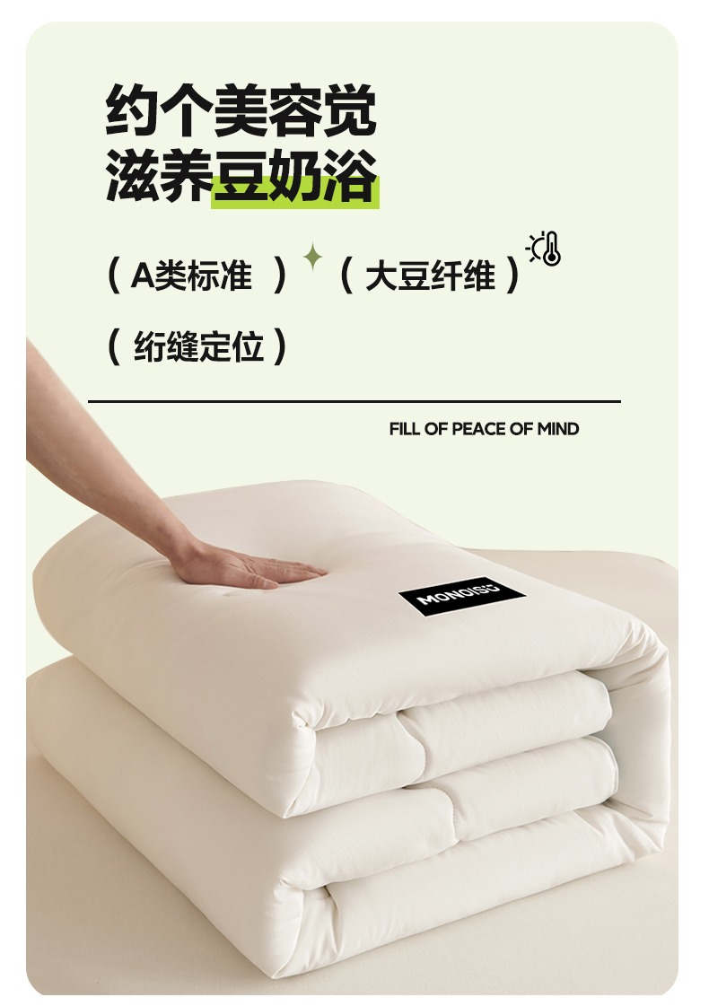 • 91家纺网 家纺一手货源 找家纺 好尚居 2026新款A类双拼贴标大豆被 米拼绿