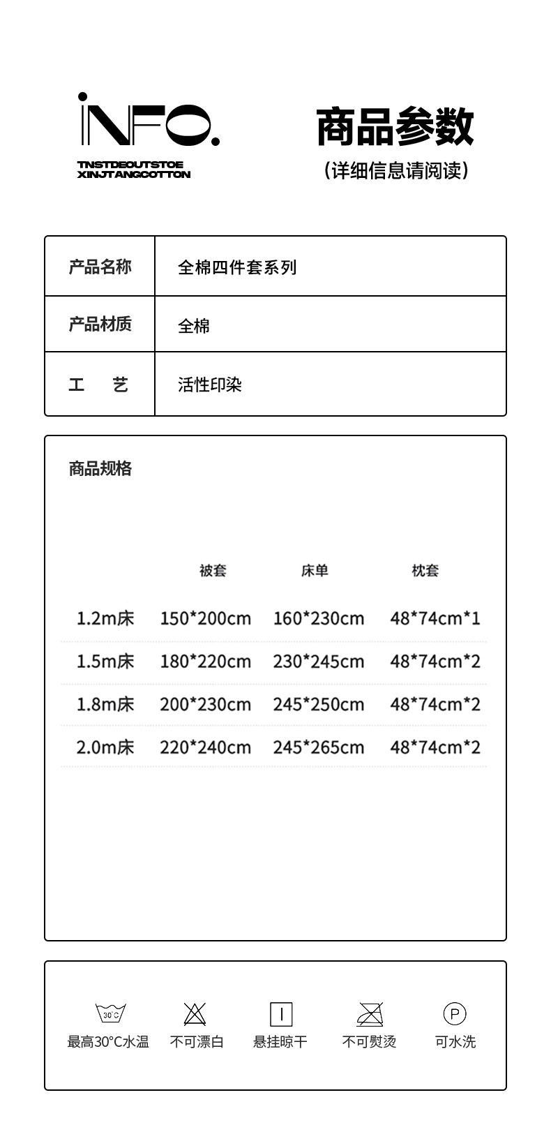 1.8m床单款四件套(被套200*230cm床单245*250cm枕套48*74cm*2) | ¥96.00 |