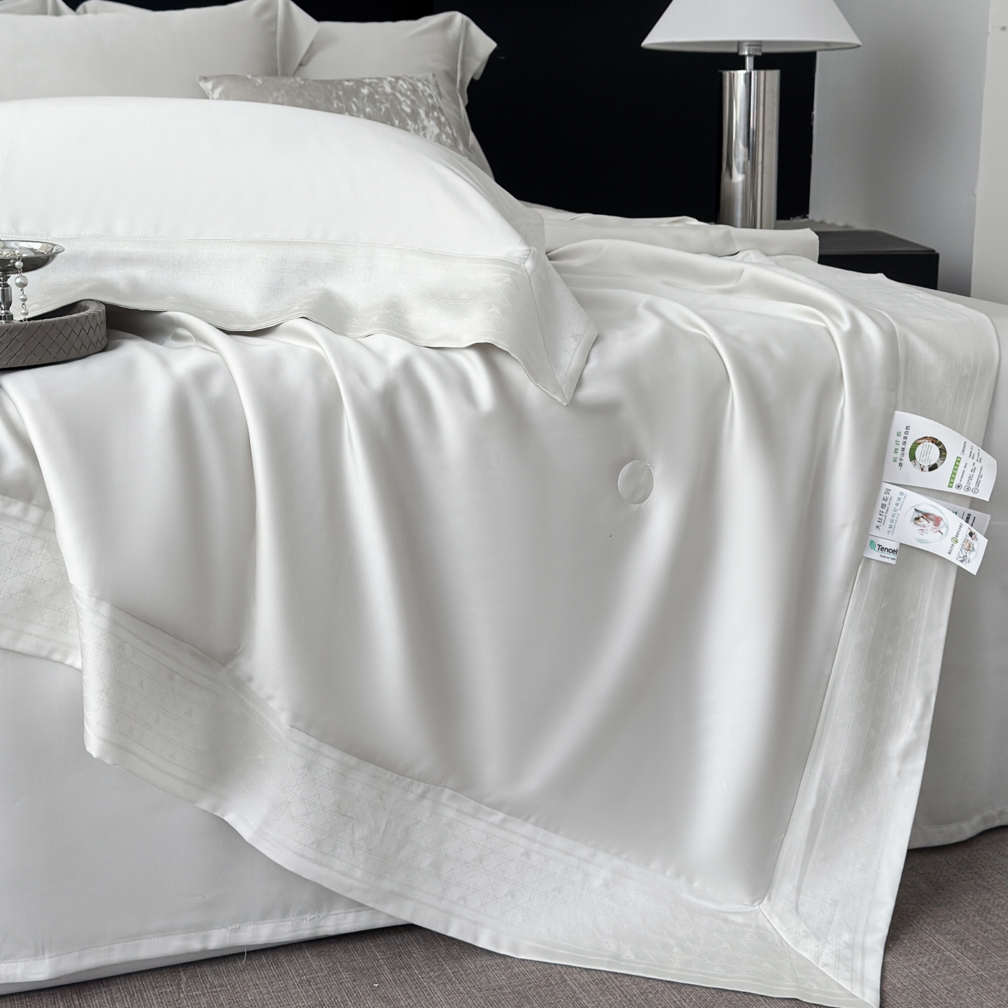 (总)娇逸家居 2025新款60支兰精素色天丝夏被子宽边镂空夏凉被,泊野白,深雾灰,石栗咖