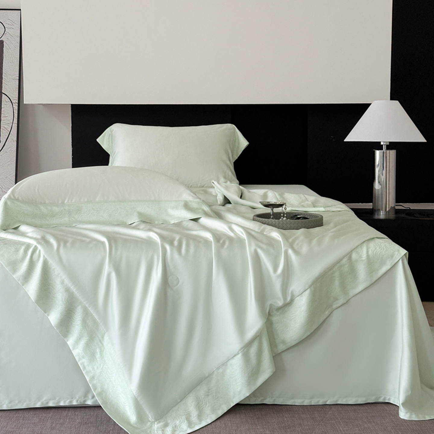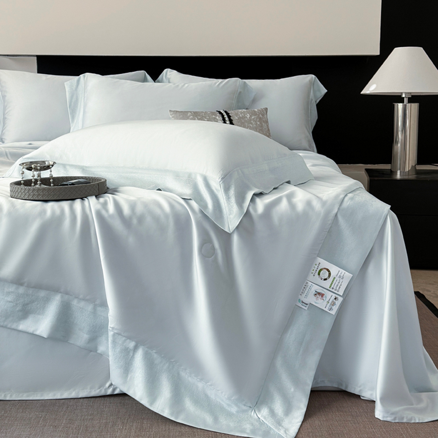 (总)娇逸家居 2026新款60天丝素色金丝提花拼边款夏被夏凉被空调被四件套-芙莉,组合图仅做展示不可下单,奶酪,素灰,汐蓝,夏绿,仙粉