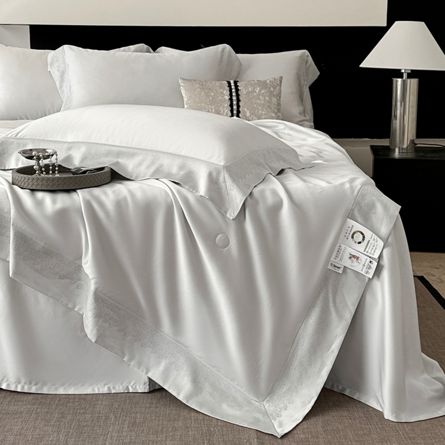 (总)娇逸家居 2025新款60支天丝棉提花贵妇银丝春秋被被子被芯可配同系列枕套床单,繁星咖,露华粉,洛神白,美乐粉,依琳白,悦动白,珠箔灰