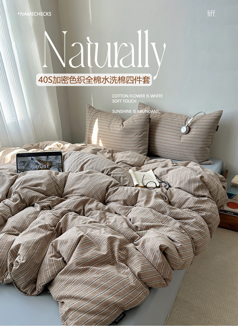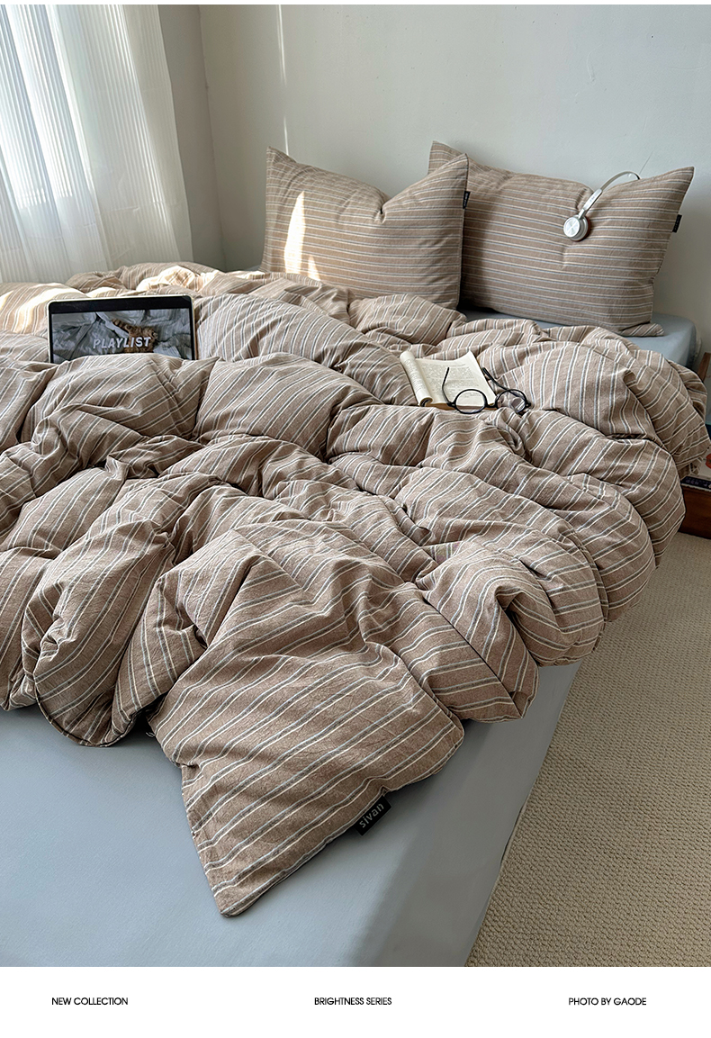 当前位置: 91家纺网 > 商品网购 > 床品套件 > 四件套 > 全棉普通四件套 > XIWEN-希文家纺 2026春夏新款40支全棉纯棉色织水洗棉四件套 海盐条-灰