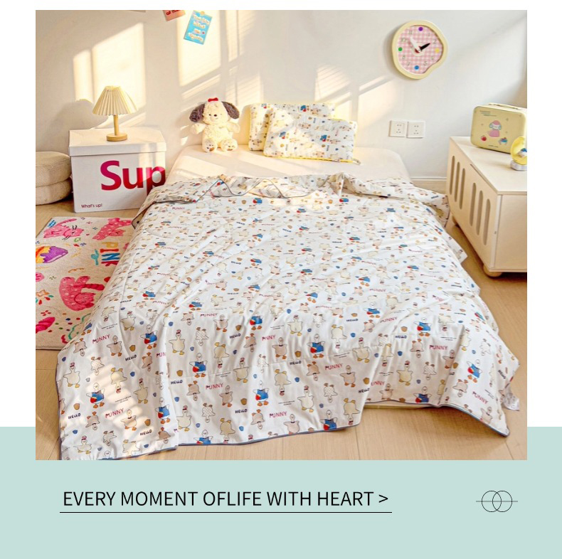 (总)十九色 2026新款液态硅胶奶嘴同源天丝棉飞边凉感夏被夏凉被空调被,小蓝心,小兔兔,草莓多多,花园里,田园趣事,小布偶