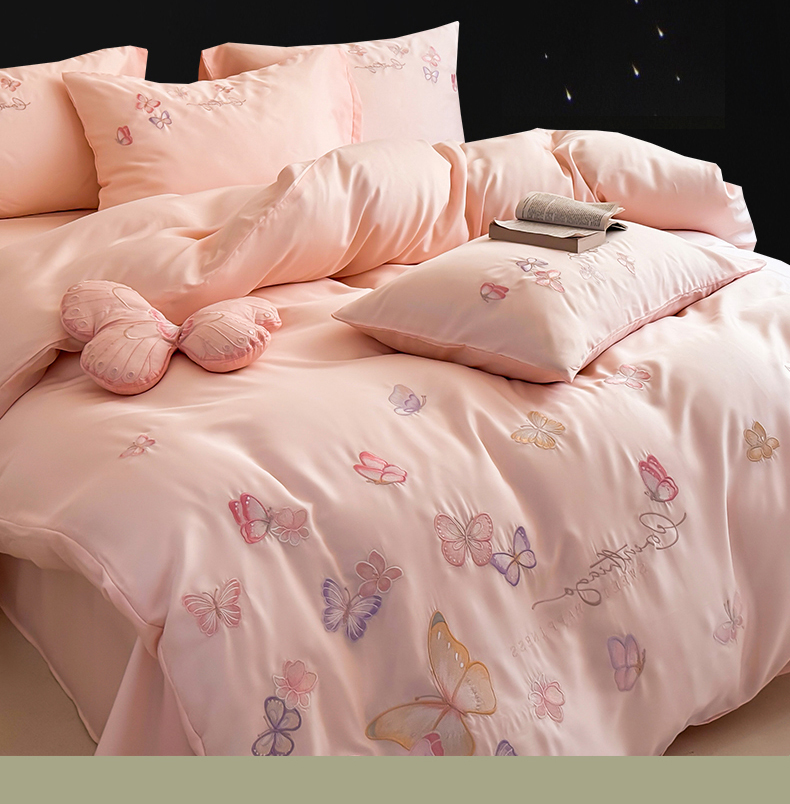 (总)绒棉世家 2026新款100%莱赛尔天丝面料刺绣四件套-蝶引系列