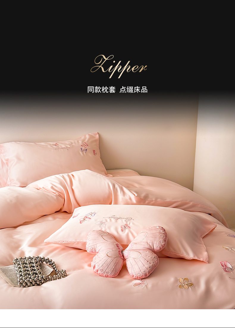 商品名称:(总)绒棉世家 2026新款100%莱赛尔天丝面料刺绣四件套-蝶引系列