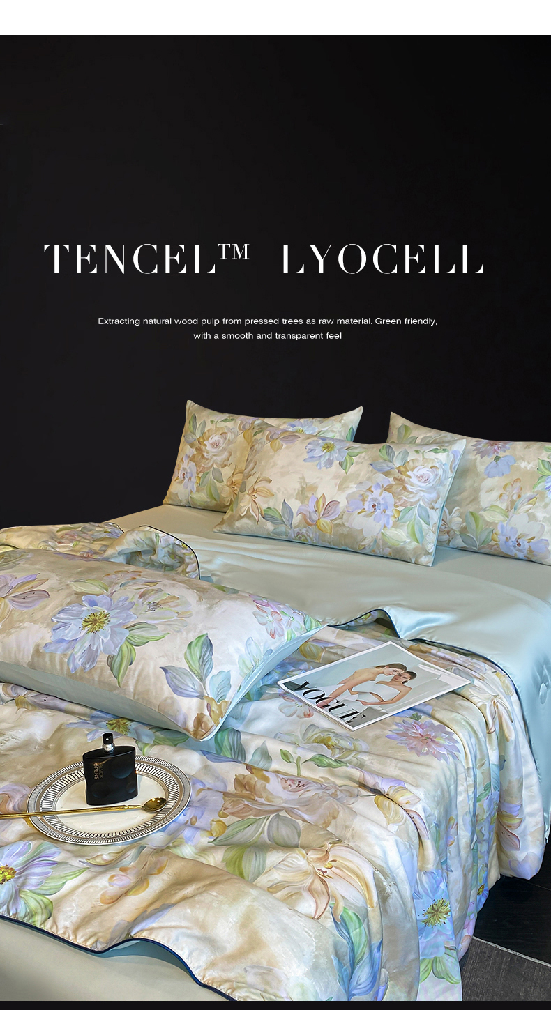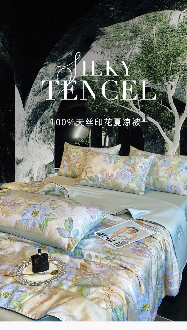 (总)绒棉世家 2026新款100%莱赛尔天丝面料数码印花天丝夏被四件套