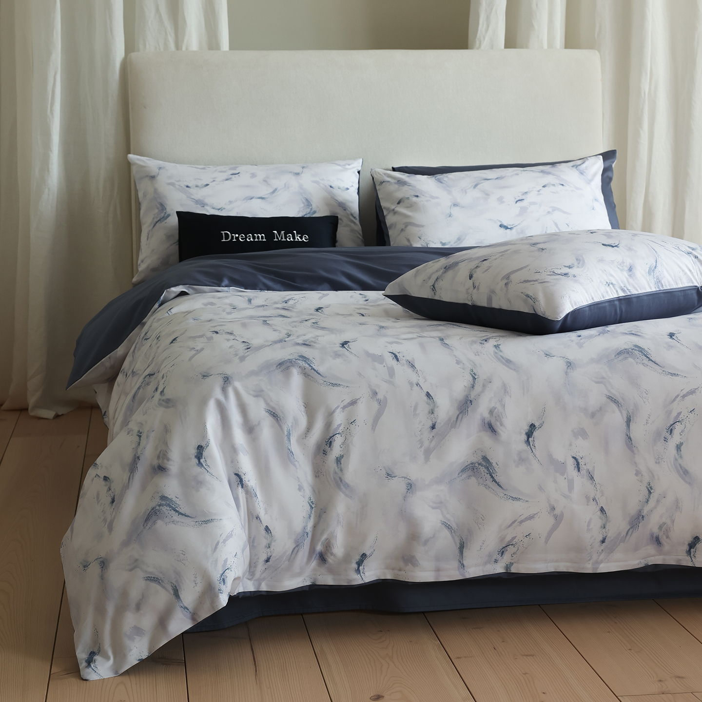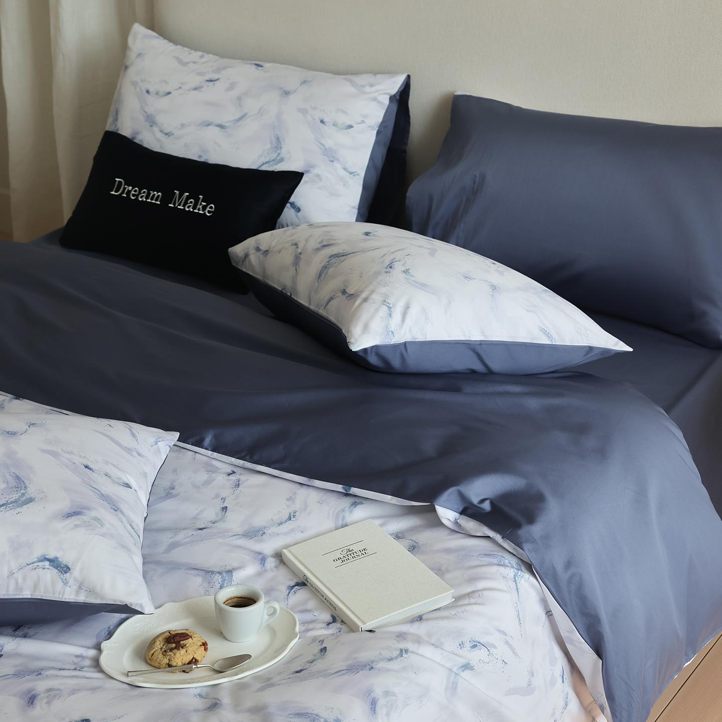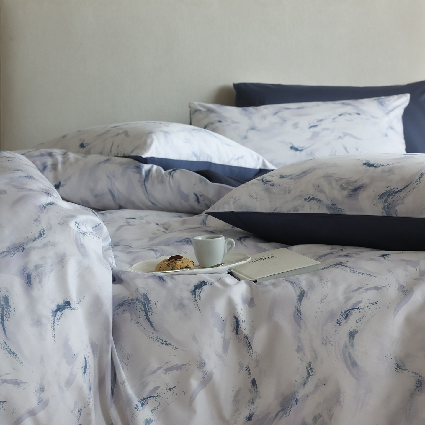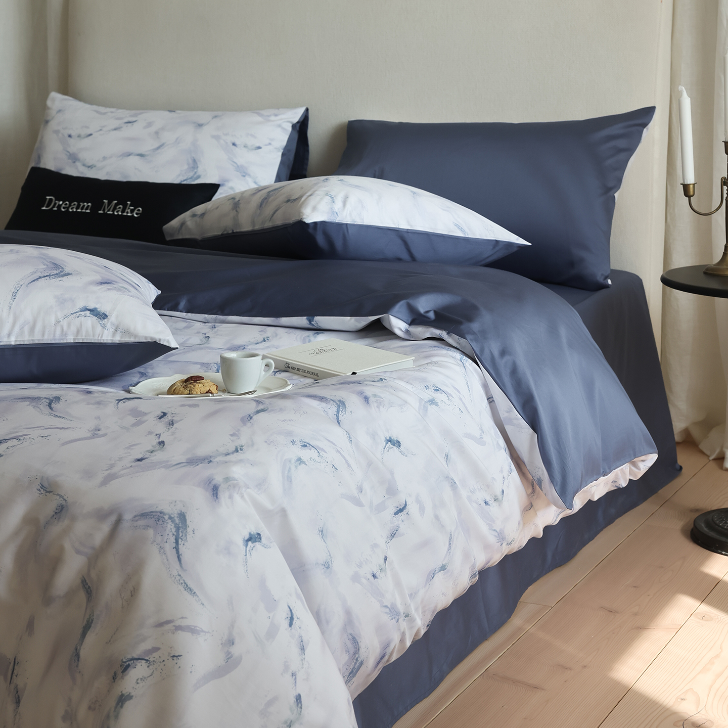 (总)ONE TWO ONE 121 【会员-20】【控价商品】【提供买家秀】【专版花型】2026新款100s长绒棉全棉床上用品数码印花四件套-听潮絮语,听潮絮语-海蓝,听潮絮语-暖咖