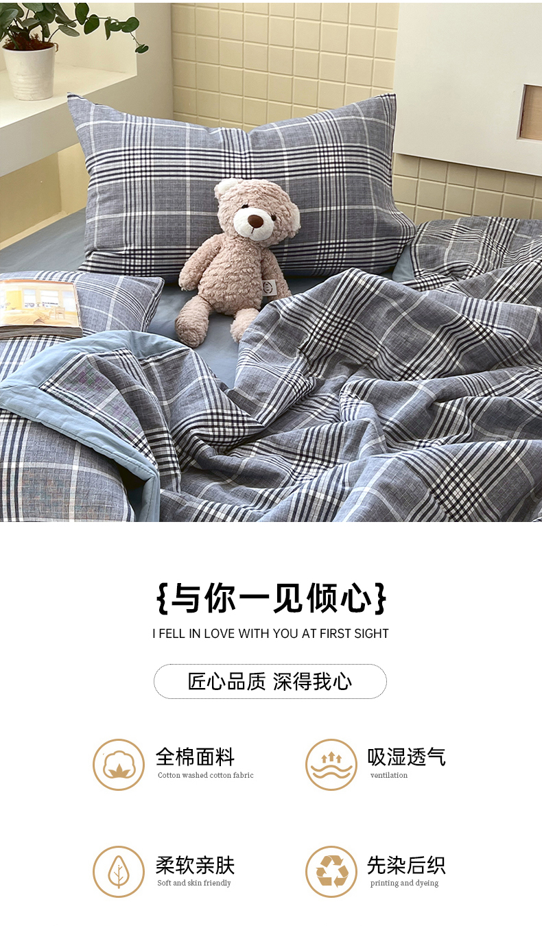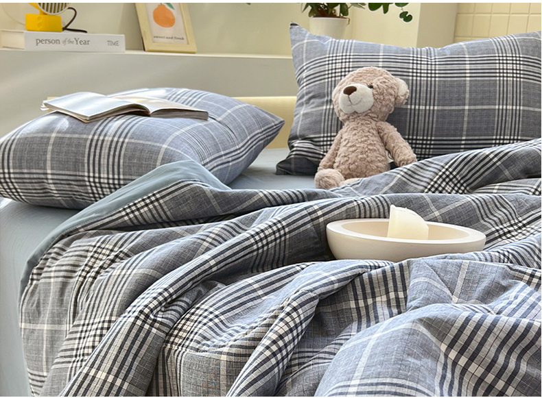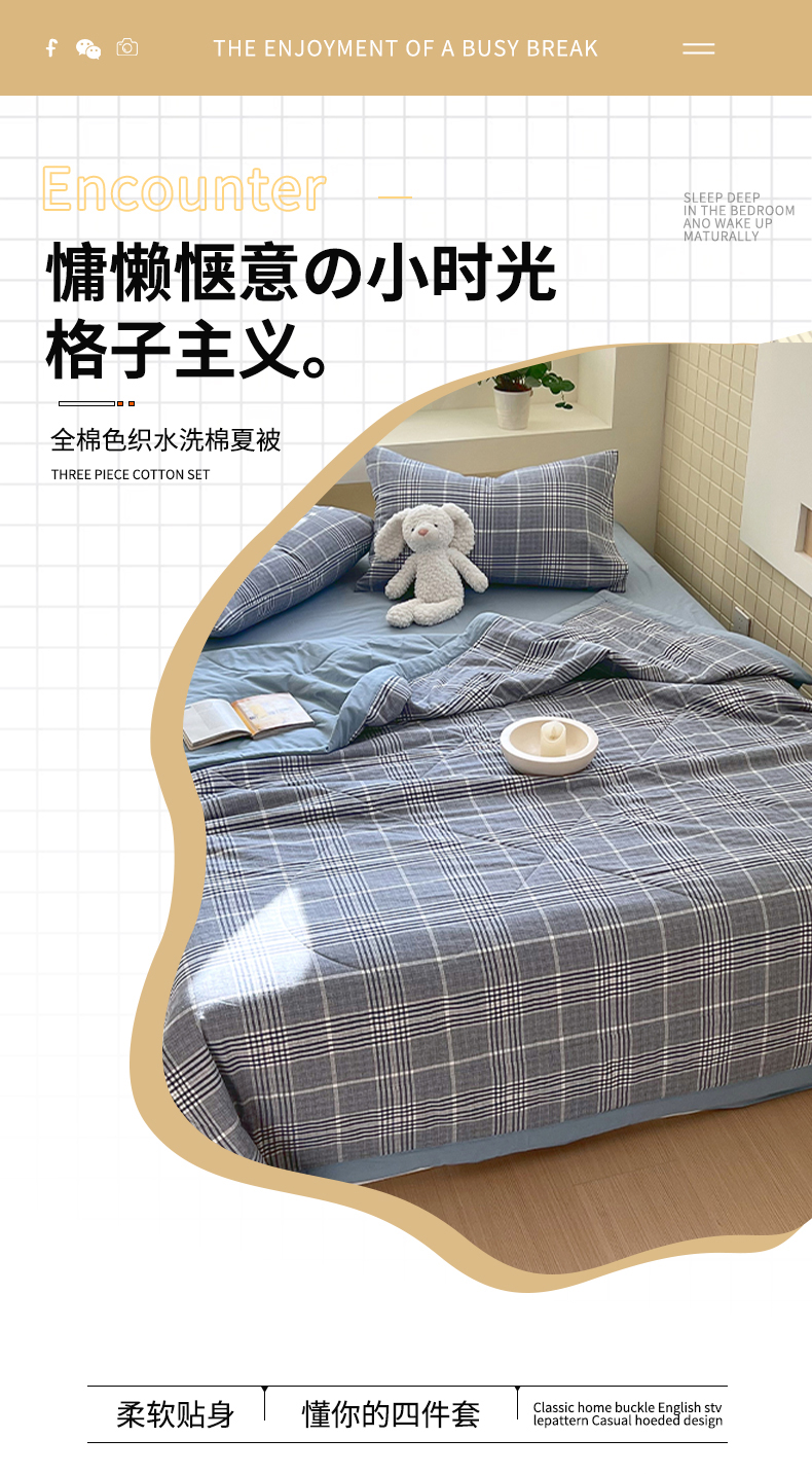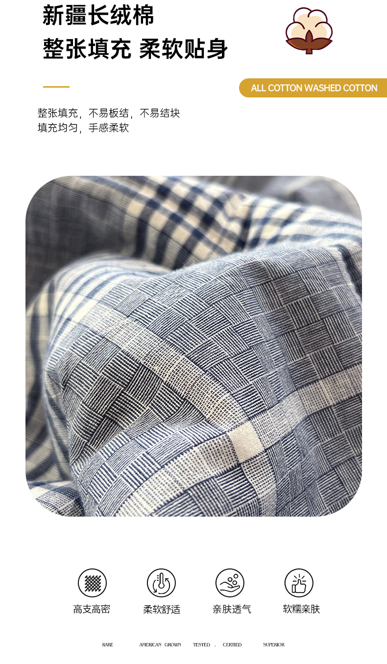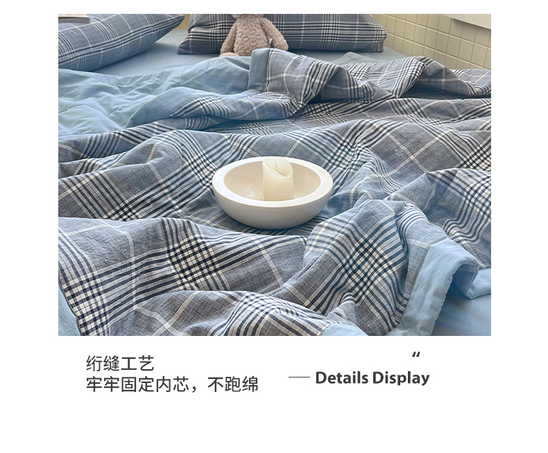 • 91家纺网 家纺一手货源 找家纺 春皖家纺 2026春夏新款全棉色织水洗棉夏被夏凉被空调被-云恋系列 云恋-格纹蓝